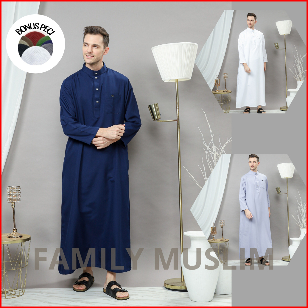 Family Muslim - Jubah Slimfit Pria Remaja Gamis Muslim Dewasa Polos Bahan Katun Adem Kancing Snap