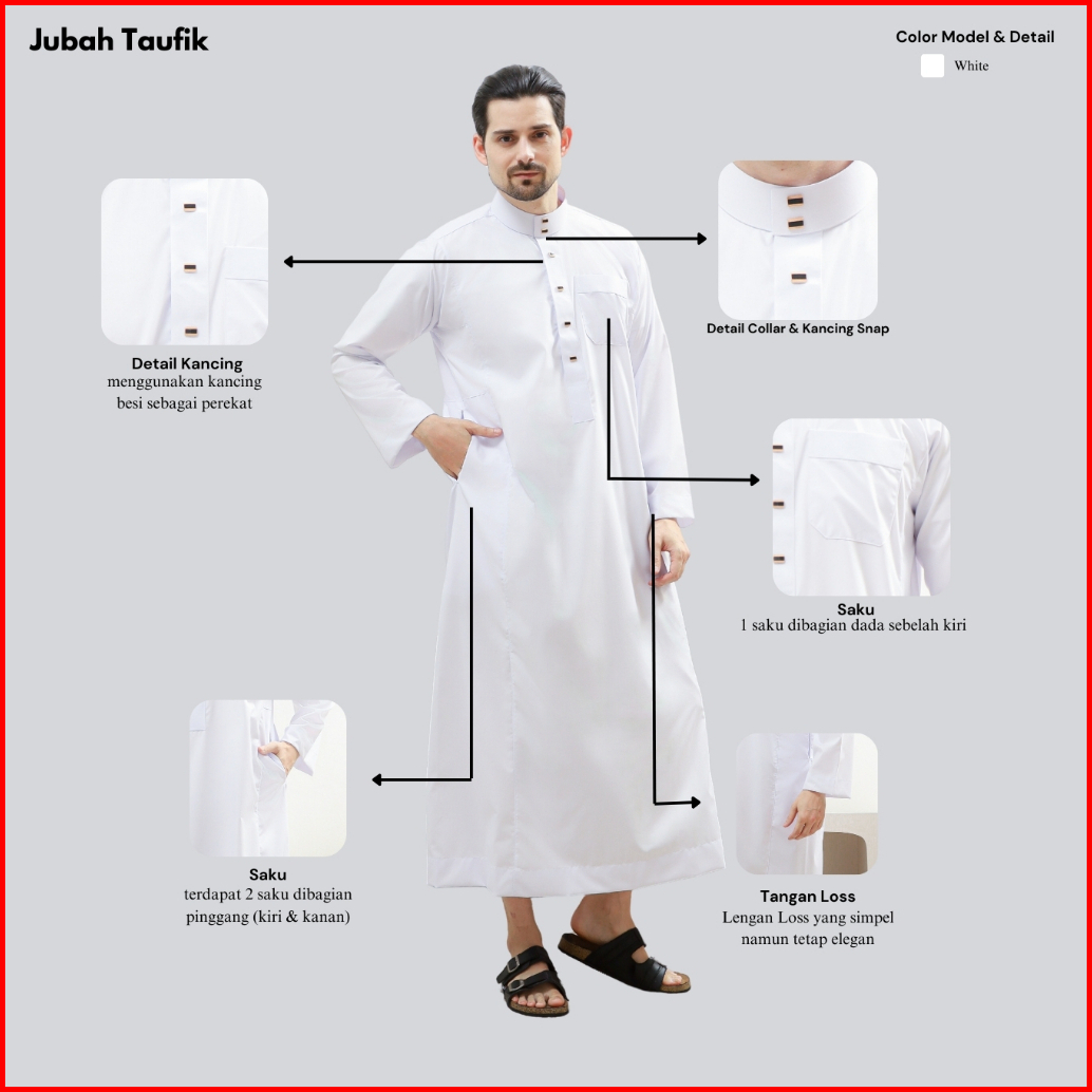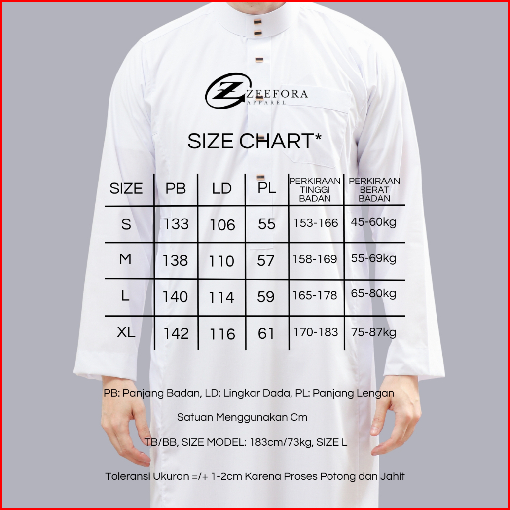 Zeefora Gamis Taufik Jubah Saudi Premium Thobe Pria Dewasa Kancing Snap Lengan Panjang Berkualitas