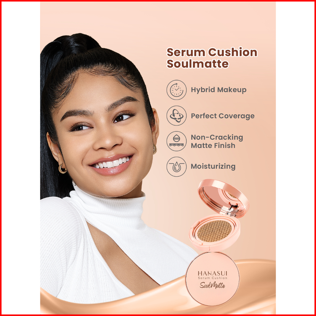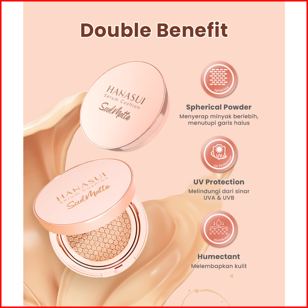 Hanasui Serum Cushion Soulmatte - Matte Finish Uva Uvb Protection Perfect Coverage Menyamarkan Pori-pori Garis Halus Nod