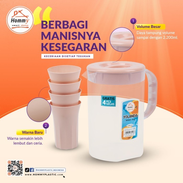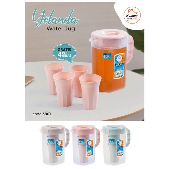 Eskan Teko Water jug Air Minum Yolanda 2,2 Liter FREE 4 PCS Gelas