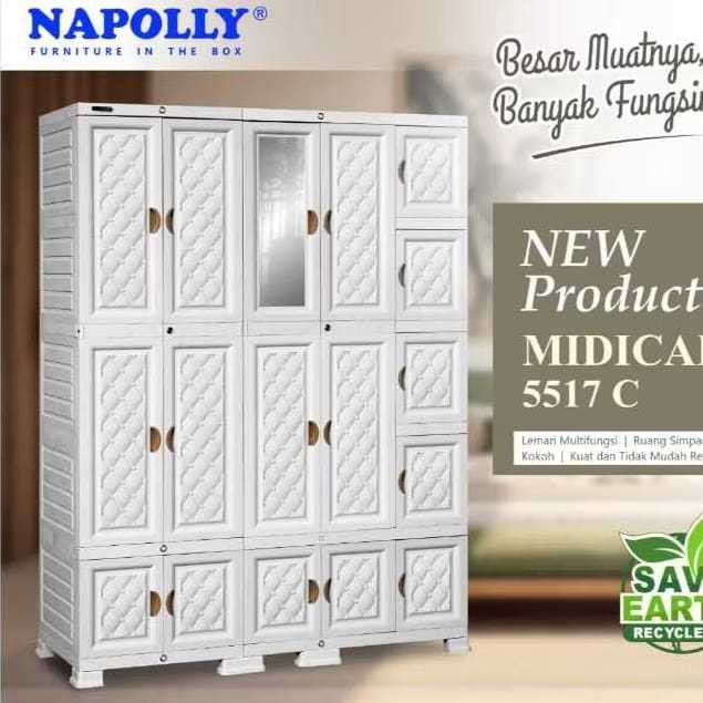 LEMARI PAKAIAN PLASTIK NAPOLLY DC JUMBO 5 PINTU 4 SUSUN 3 KACA BERKUALITAS 2024/2025 SUSUN RAKIT GANTUNG MINIMALIS MURAH