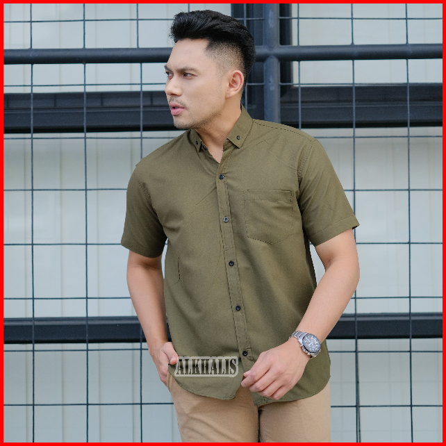 Kemeja Pria Boyi Top Man Lengan Pendek Kasual Formal Kerja Putih Hitam Navy Grey Warna White