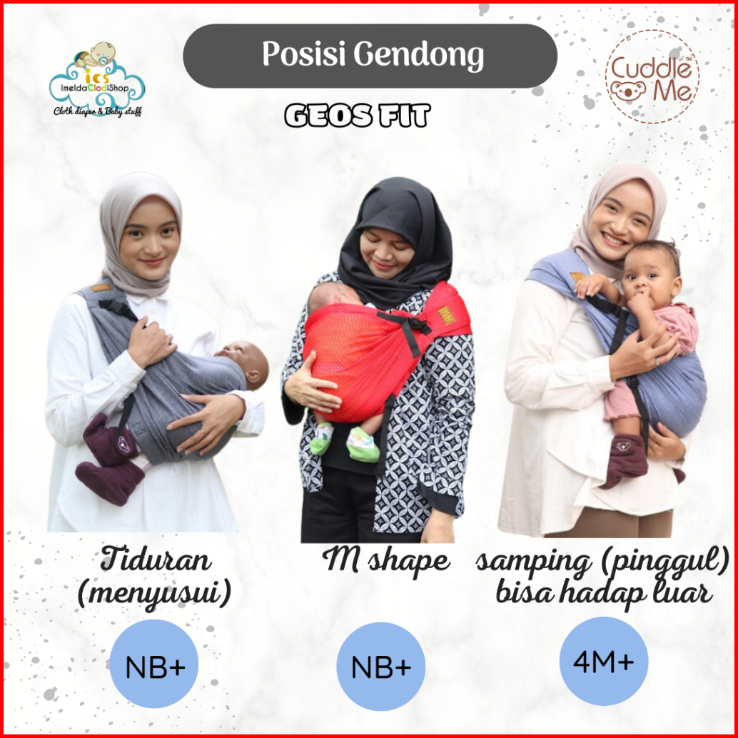 Cuddle Me Geos Fit Air Dan Sporty Spessa Gendongan Bayi M Shape Ringkes Lembut Free Pouch
