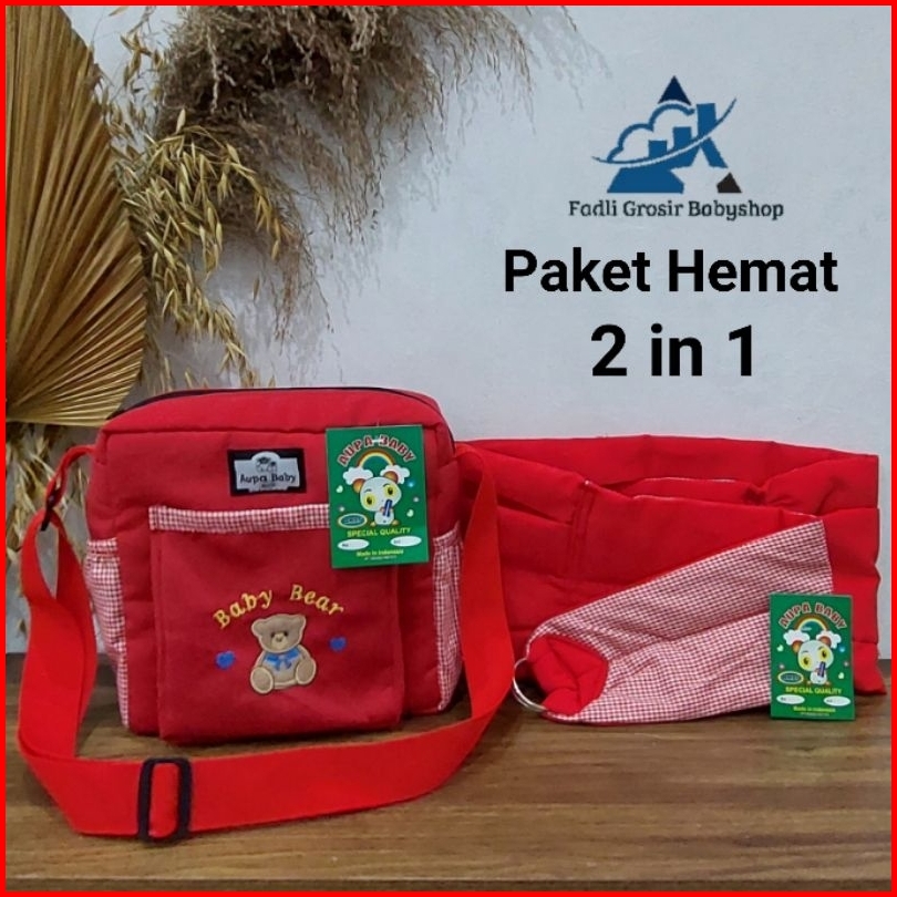 Paket Hemat 2 In 1 Tas Bayi Raffa Bordir Dan Gendongan Bayi Samping Polos Terlaris