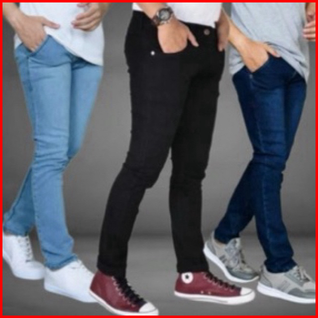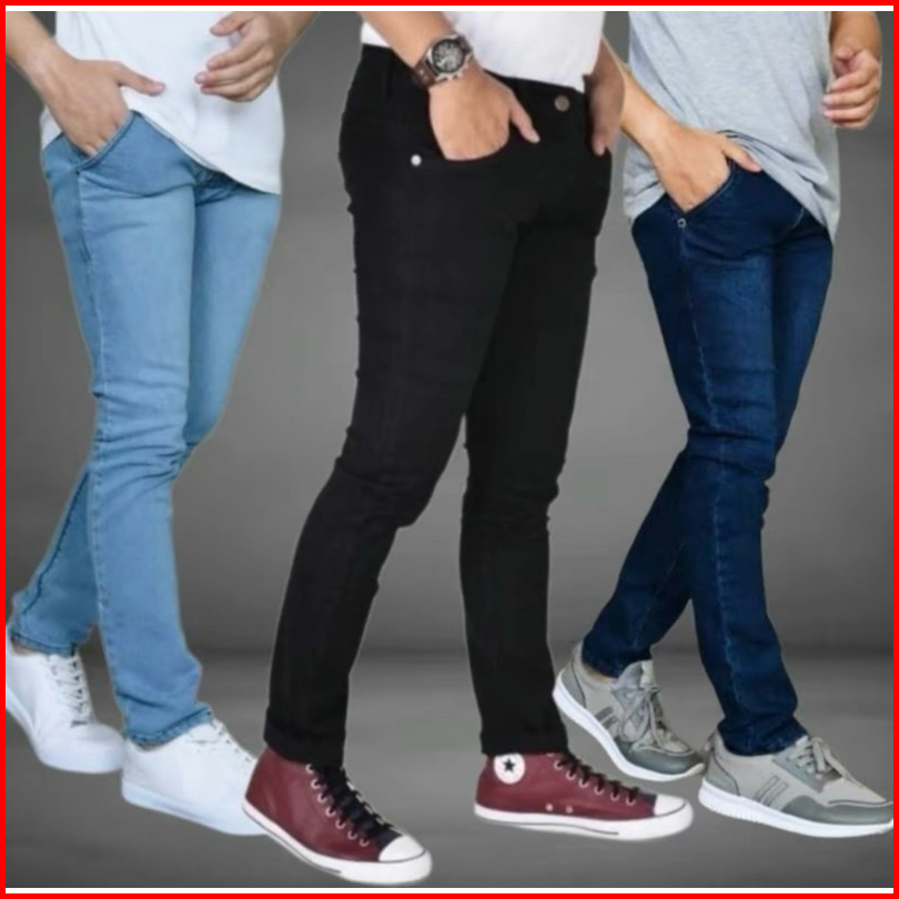 Celana Jeans Pria Dewasa Denim Paket 3 Pcs Bahan Melar Ngaret Stretch Terbaru