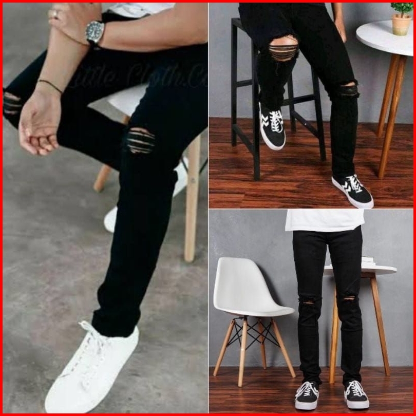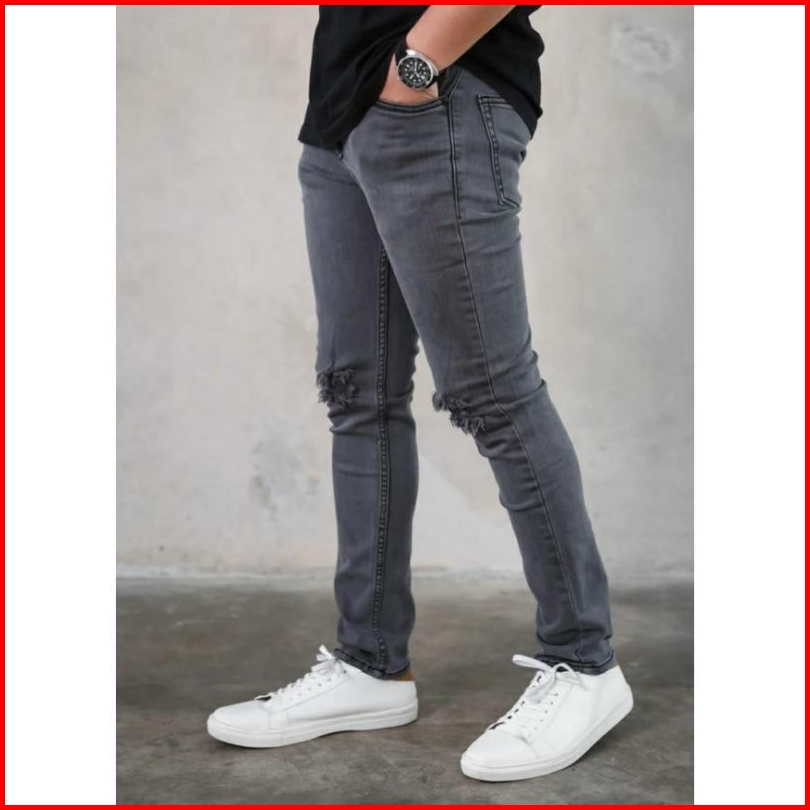 Celana Panjang Jeans Pria Sobek Lutut Ripped Soft Jeans Pensil Slimfit Skinny Strect Melar