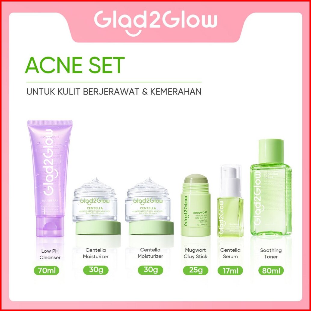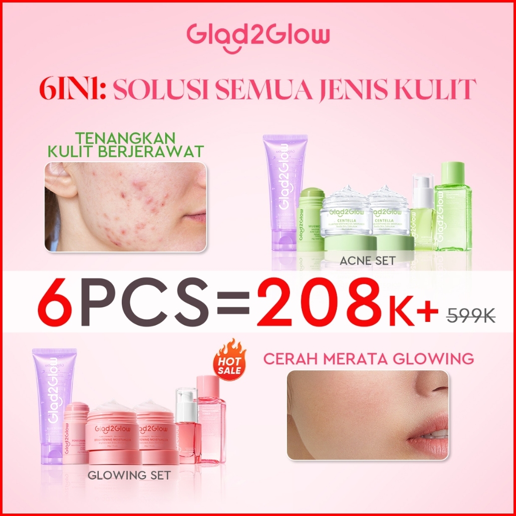6in1 Glad2glow 6 In 1 Bundle -6pcs Paket Skincare Moisturizer Serum Clay Mask Facial Wash Toner-acne Kit Glowing Kit Dar