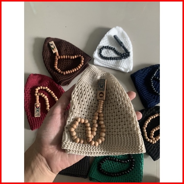 Paket Peci Rajut Nanas Polos Motif Tasbih 33 Dewasa Bayi Hitam Putih Souvenir Haji Umroh Alquran Oleholeh Sorban Sarung