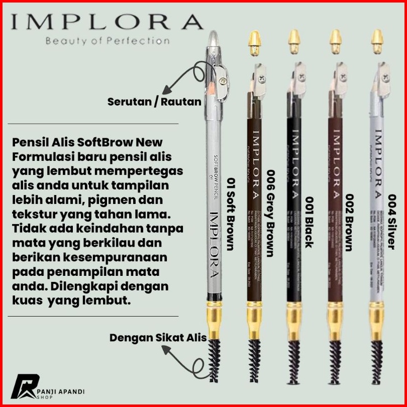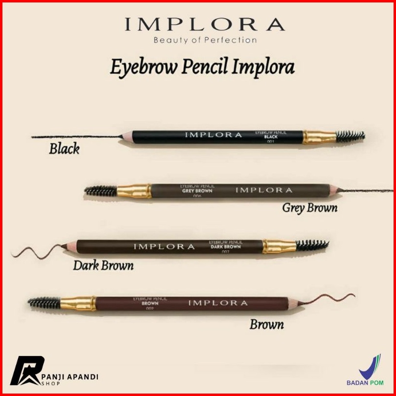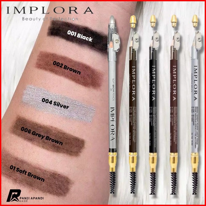Pensil Alis Implora 2in1 Bpom - Eyebrow Pencil Serutan Sikat Waterproof Long Lasting