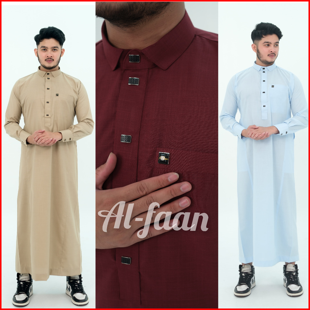 Jubah Pria Slimfit Gamis Pria Jubah Pria Muslim Jubah Premium Lengan Panjang Manset Kancing Katun Hitam Rabes