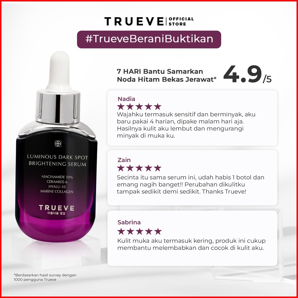 Trueve Luminous Dark Spot Brightening Serum - Serum Pencerah Muka Dan Penghilang Flek Hitam Menjaga Skin Barrier Cocok U