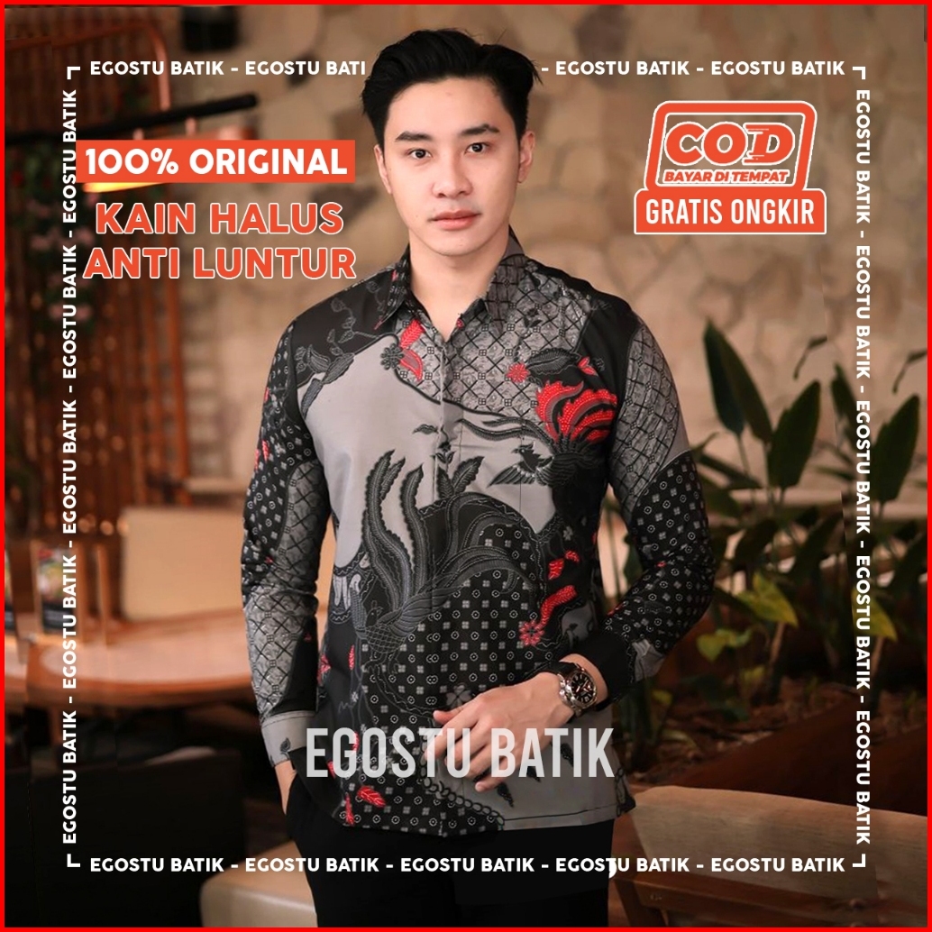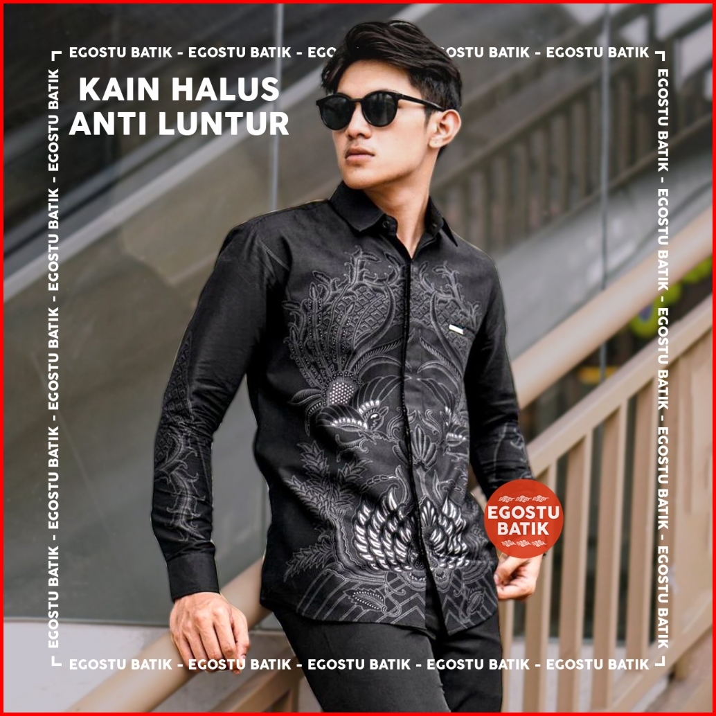 Kemeja Batik Pria Lengan Panjang Dewasa Batik Warna Hitam Batik Abu Abu M-l-xl-xxl Bswart Egostu Batik