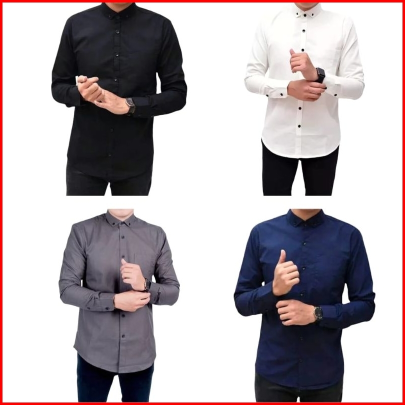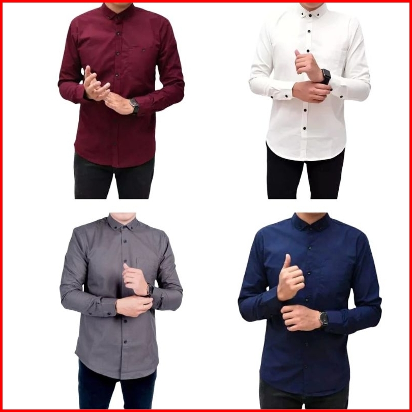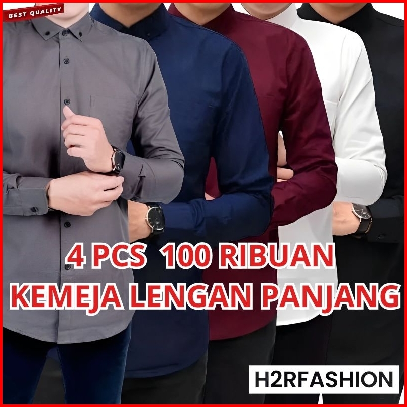 Paket Hemat Promo 4 Pcs Kemeja Pria Polos Lengan Panjang Casual Formal Kantor Bahan Halus Katun