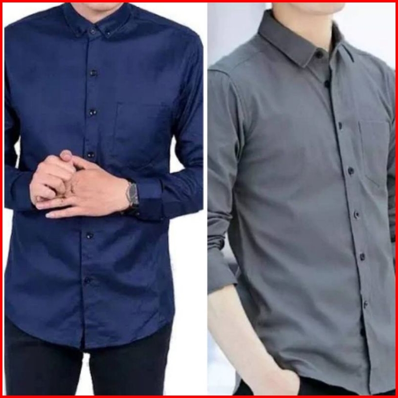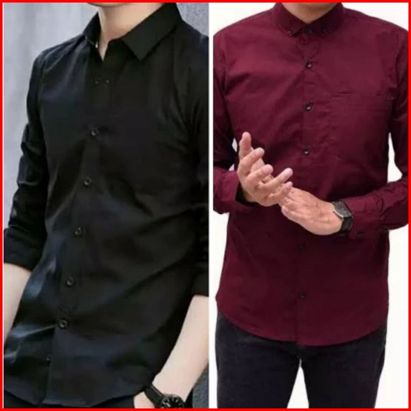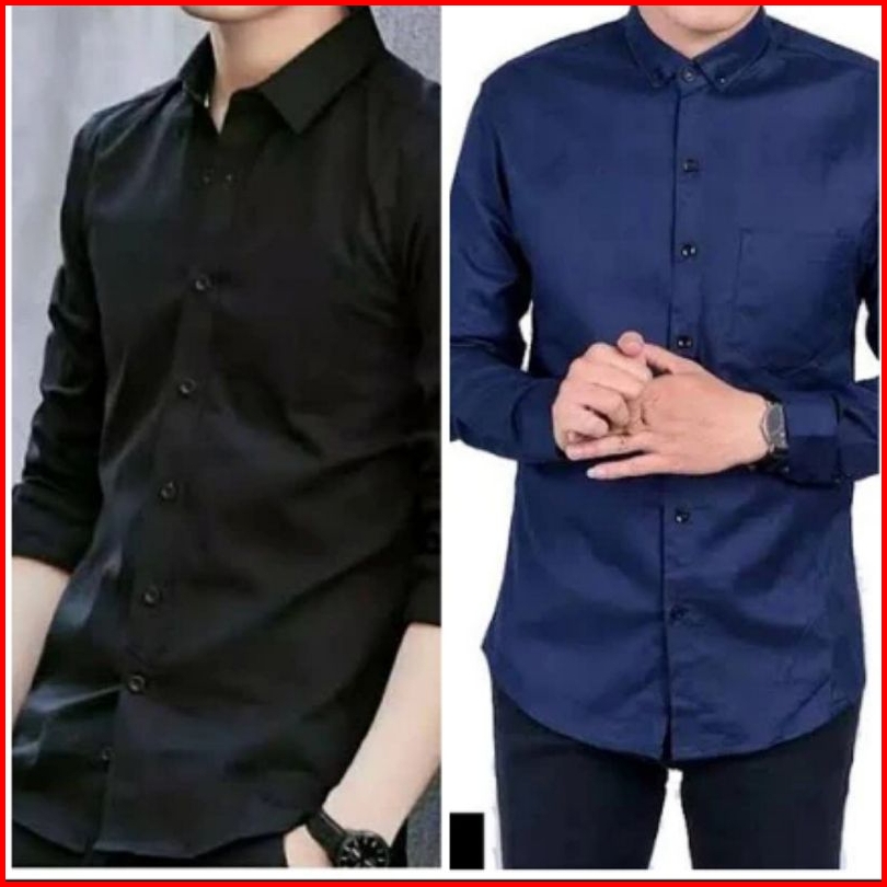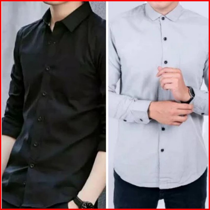 Paket Hemat 2 Pcs Kemeja Polos Dewasa Lengan Panjang Hitam Putih Casual Slimfit Baju Kantor Pria