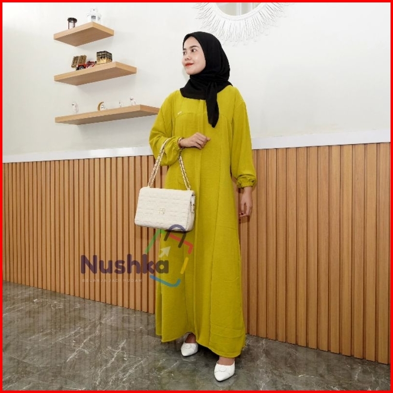 Gamis Elshira Crinkle Airflow Ld110 Abaya Syari Premium Quality Gamis Busui Friendly