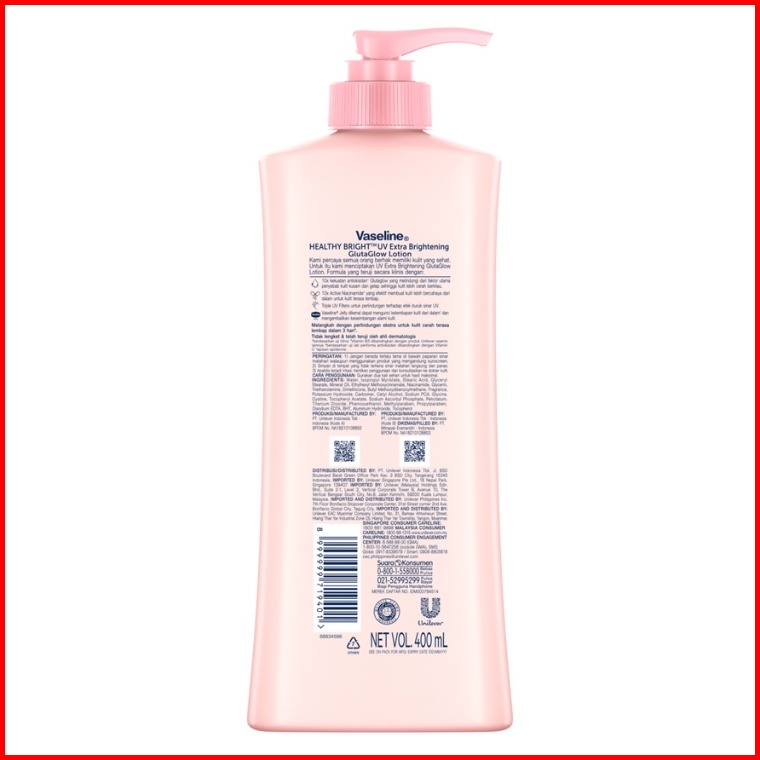 Vaseline Healthy Bright Hand Body Lotion Uv Extra Bright With Sunscreens Niacinamide 400ml X2