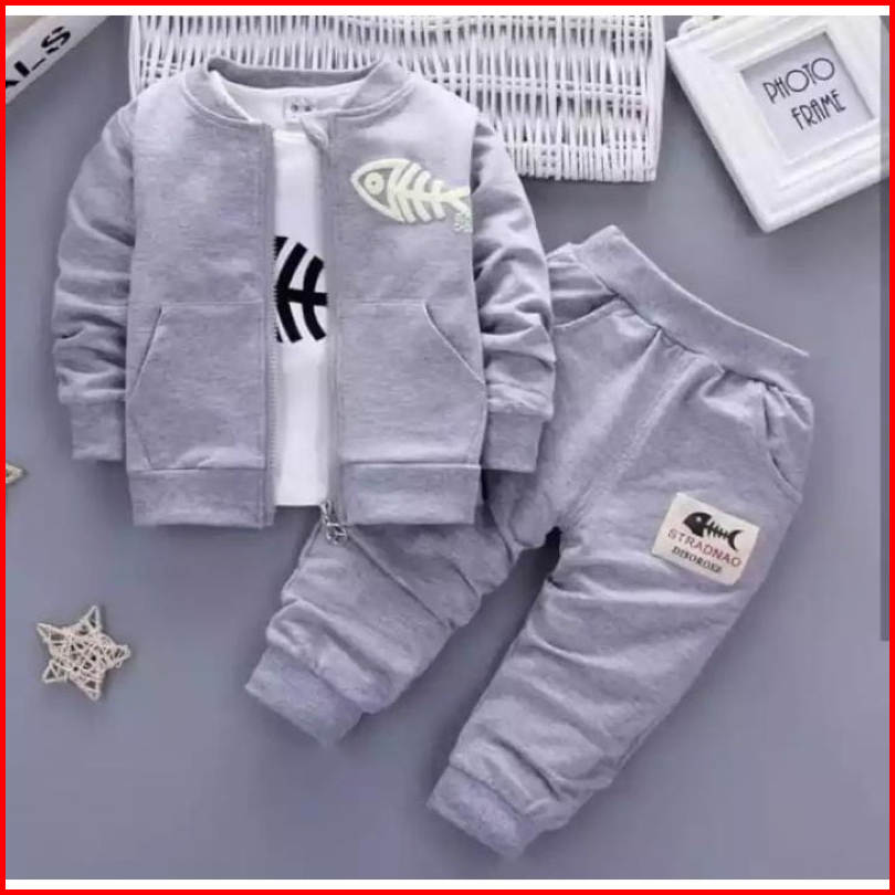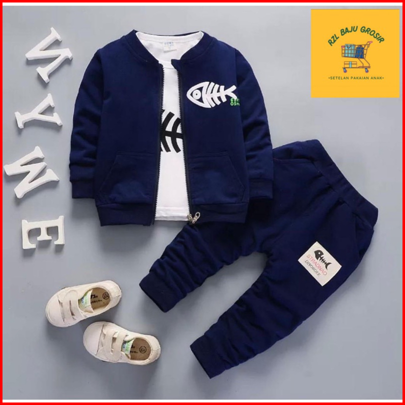 Setelan 3 In 1 Jaket Varsity Baseball Celana Joger Bayi Anak Usia 6 Bulan-5 Tahun Best Quality Terbaru Termurah Setelan