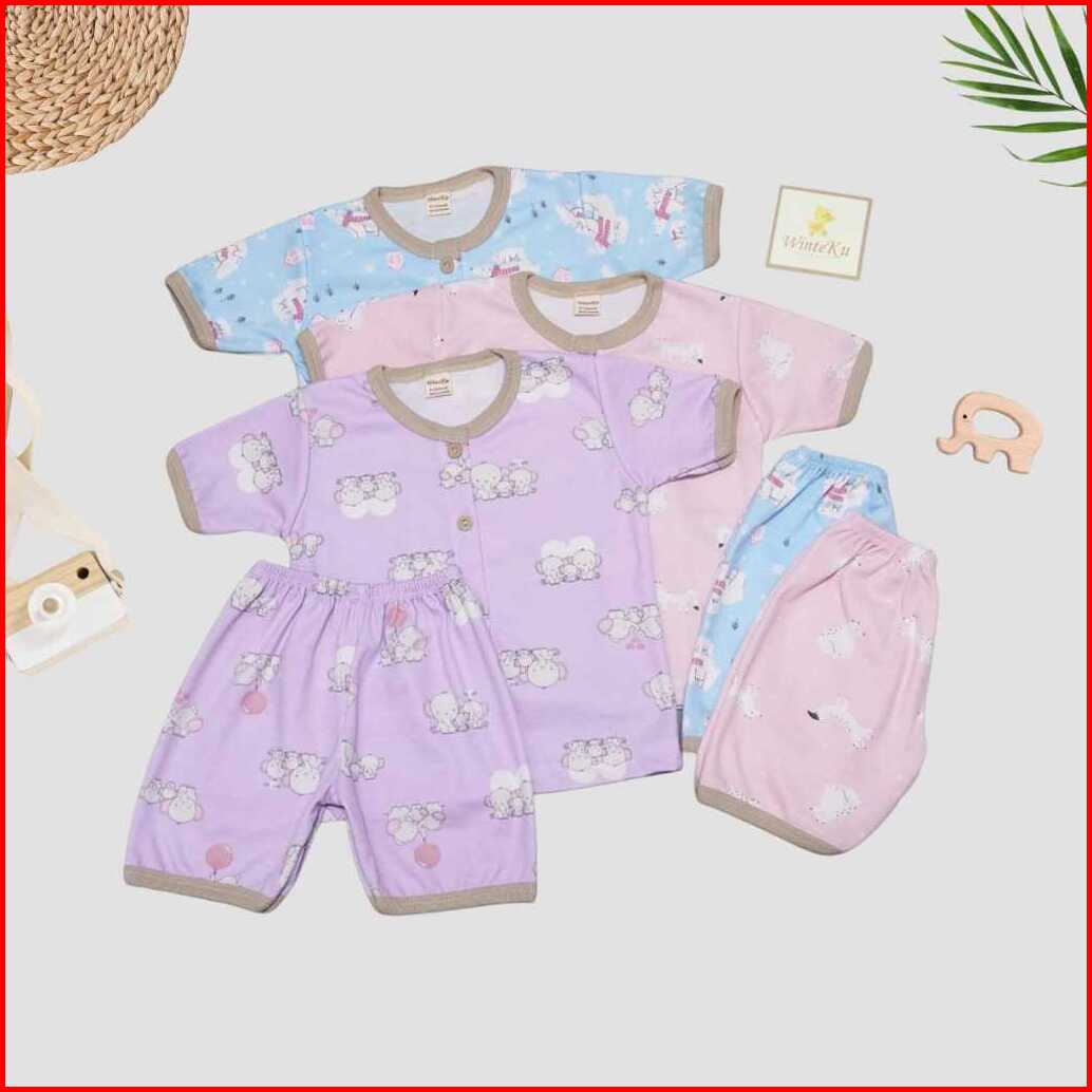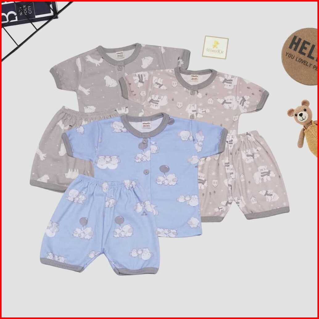 Winteku 3pcs Setelan Pendek Kancing Depan Motif Classic Animal Girl Boy Piyama Pendek Bayi