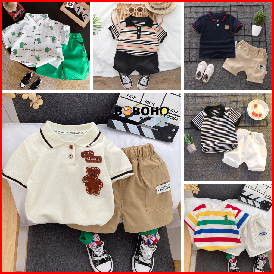 Boboho - Setelan Baju Anak Setelan Bayi Laki-laki Lengan Pendek Gaya Modis Terlaris
