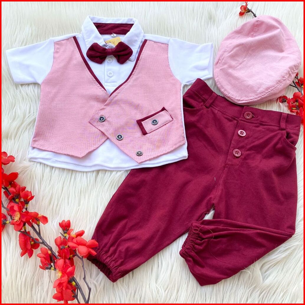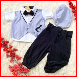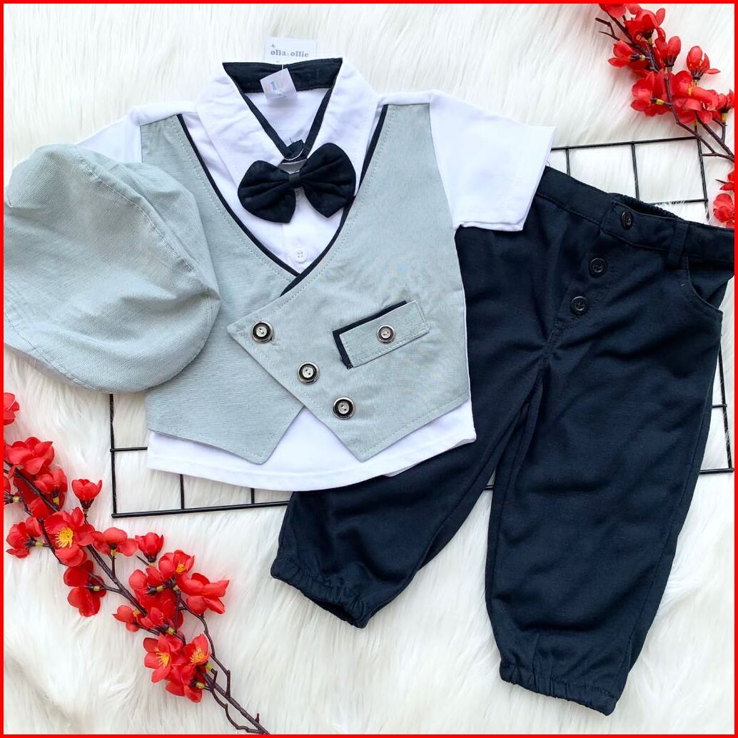 Baju Setelan Kemeja Rompi Sambung Topi Dasi Celana Panjang Keren Fashion Anak Bayi Cowok Laki Murah -har