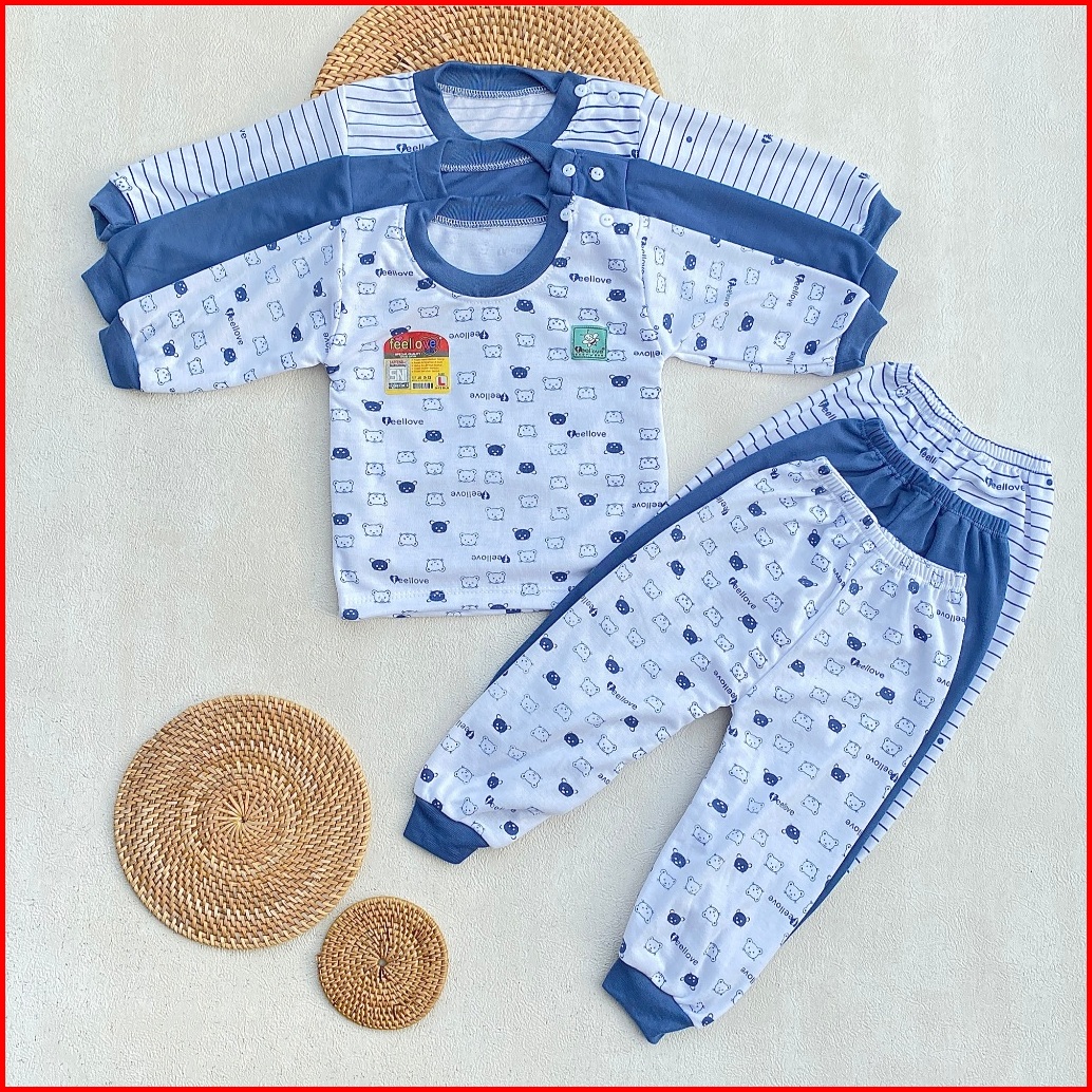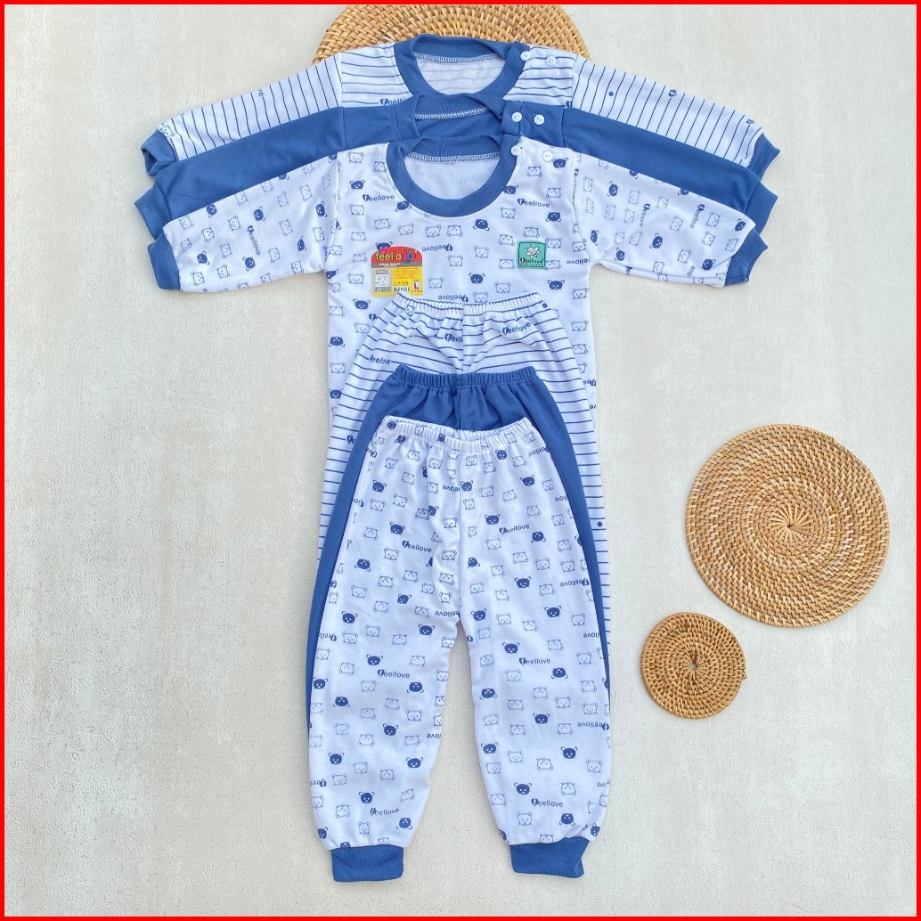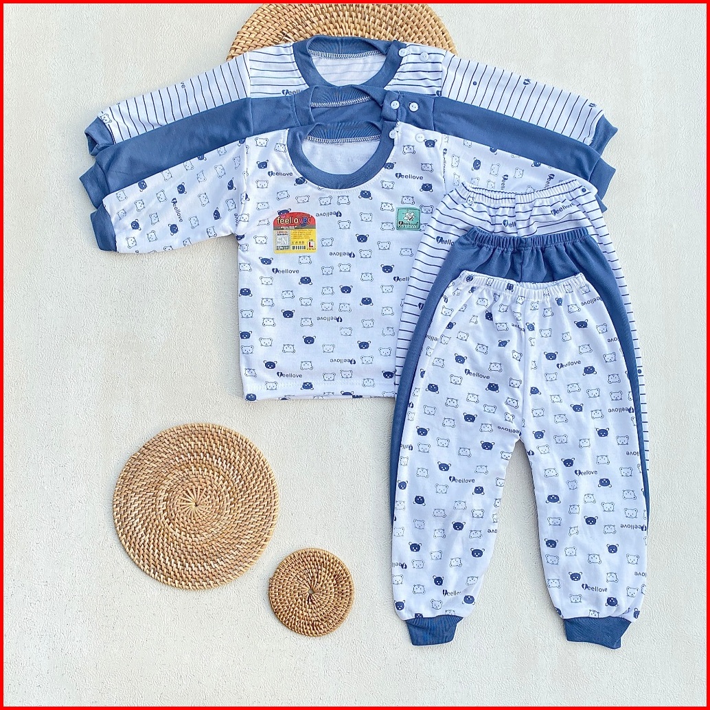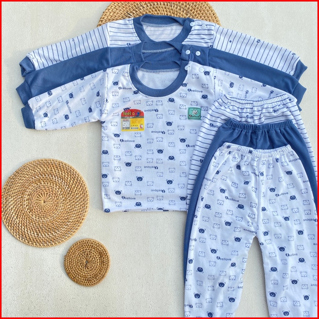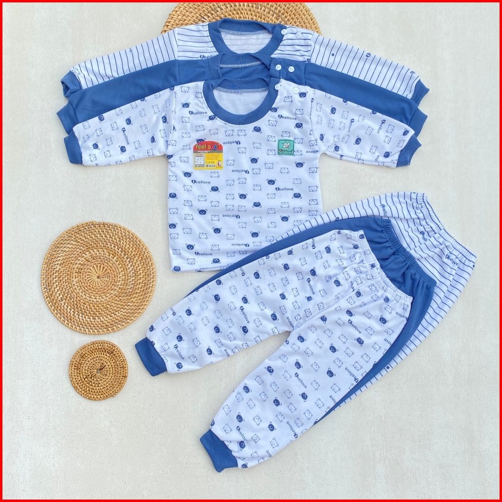 Feellove - 3 Setelan Bayi 3-18 Bulan S M L Xl Piyama Bayi Lengan Panjang Warna Biru Motif Bear Denim
