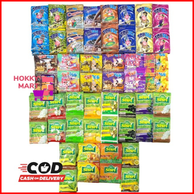 TEH SISRI APEL, TEH SISRI GULA BATU, TEH SISRI ES TEH MNS, TEH SISRI CINCAU, TEH SISRI BLCKCURANT, TEH SISRI MELATI, TEH SISRI LEMON, TEH SISRI LEMON COLA, TEH SISRI GULA TEBU, TEH SISRI ORIGINAL, TEH SISRI MANGGA, TOP ICE COKELAT, TOP ICE CAPUCINO, TOP ICE BIZCHOCO, TOP ICE VANILA, TOP ICE BLUEBERRY, TOP ICE GRAPE, TOP ICE VANILA BLUE, TOP ICE PERMEN KARET, TOP ICE TARO, TOP ICE MANGO, TOP ICE COCO ES KRIM, TOP ICE CHOCO CHESEE, TOP ICE COCO WAFFER, TOP ICE KACANG IJO, TOP ICE DURIAN, TOP ICE MELON, TOP ICE STRAWBERRY, TOP ICE MOMORIO