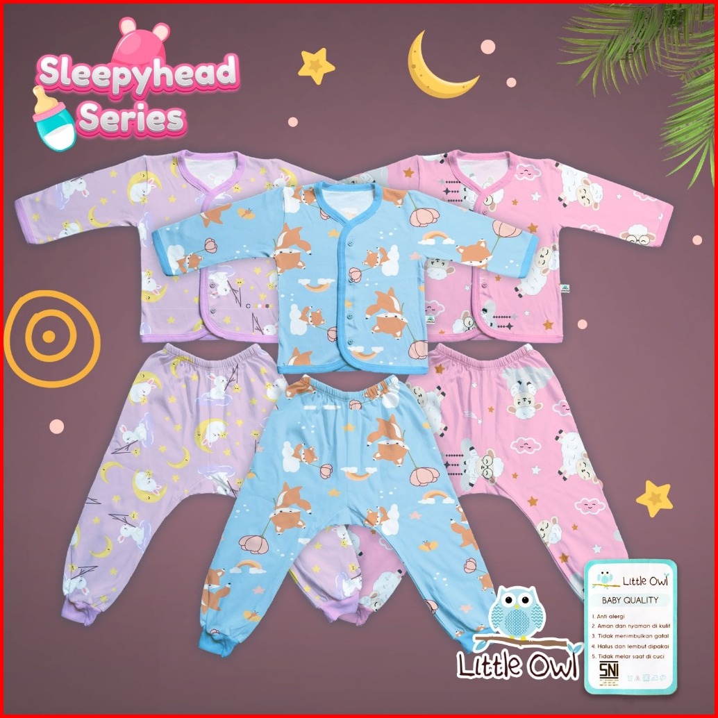 Little Owl 3pcs Setelan Panjang Kancing Depan Motif Untuk Anak Bayi Terbaru Sni