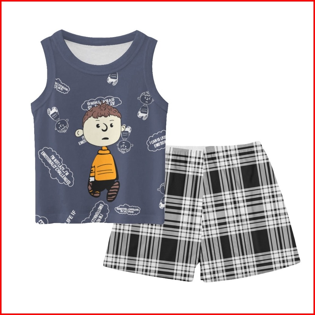 Ybss Setelan Singlet Anak Perempuan Laki Laki Motif Karakter Hewan Animasi Lucu Full Frint Atasan Lengan Lekbong Celana