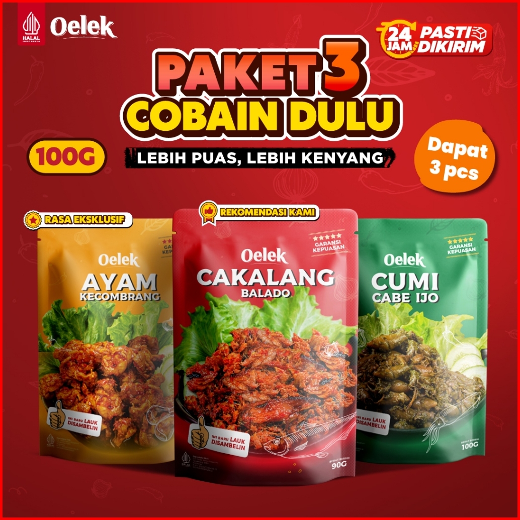 Oelek Paket Cobain Dulu 3 Lauk 100 Gram Lebih Hemat Cakalang Balado Cumi Cabe Ijo Ayam Kecombrang Lauk Siap Saji