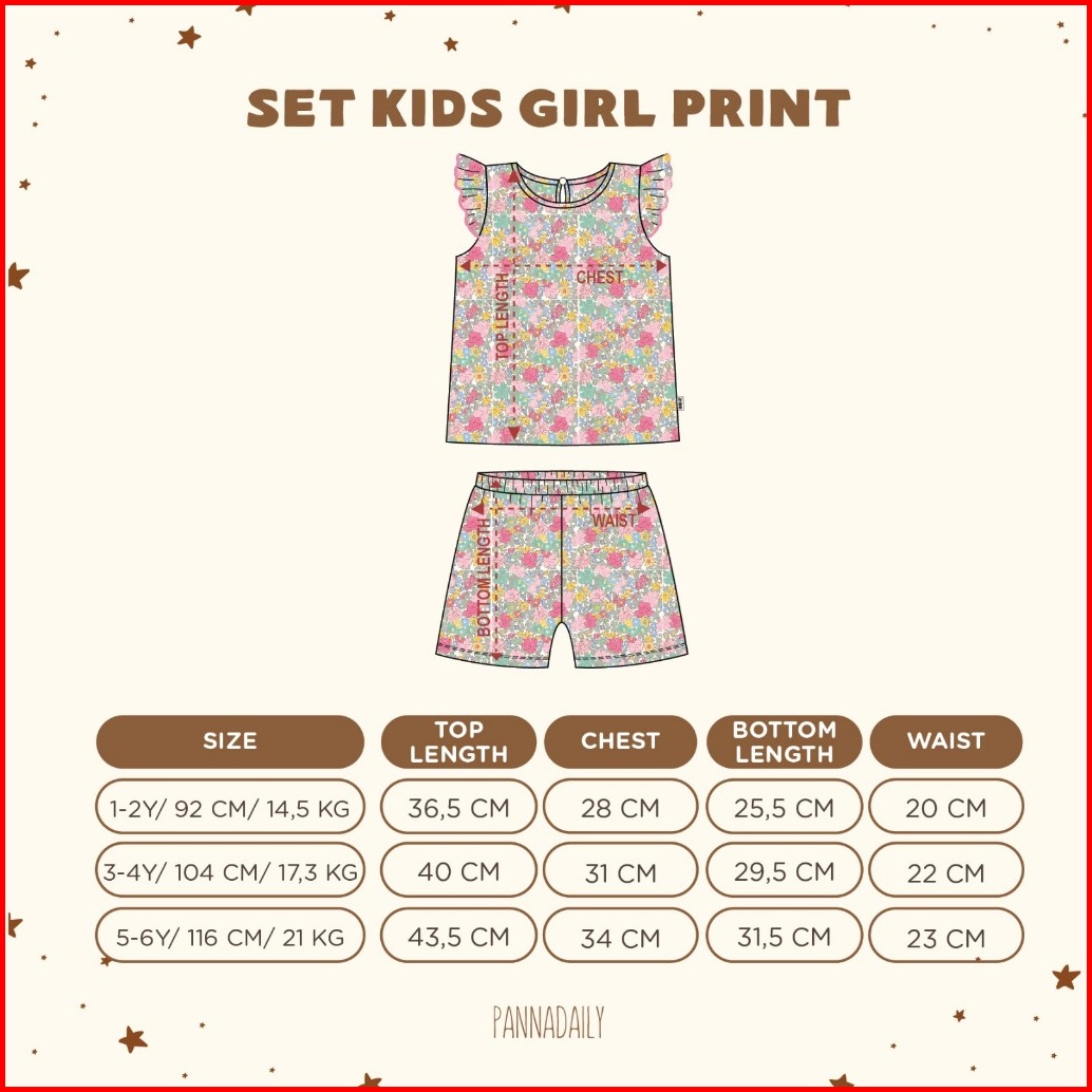 Pannadaily 0-6 Tahun Basic Set Girl Setelan Ruffle Motif Bunga Setelan Anak Panna Daily Pendek Panjang Bohopanna Cbks