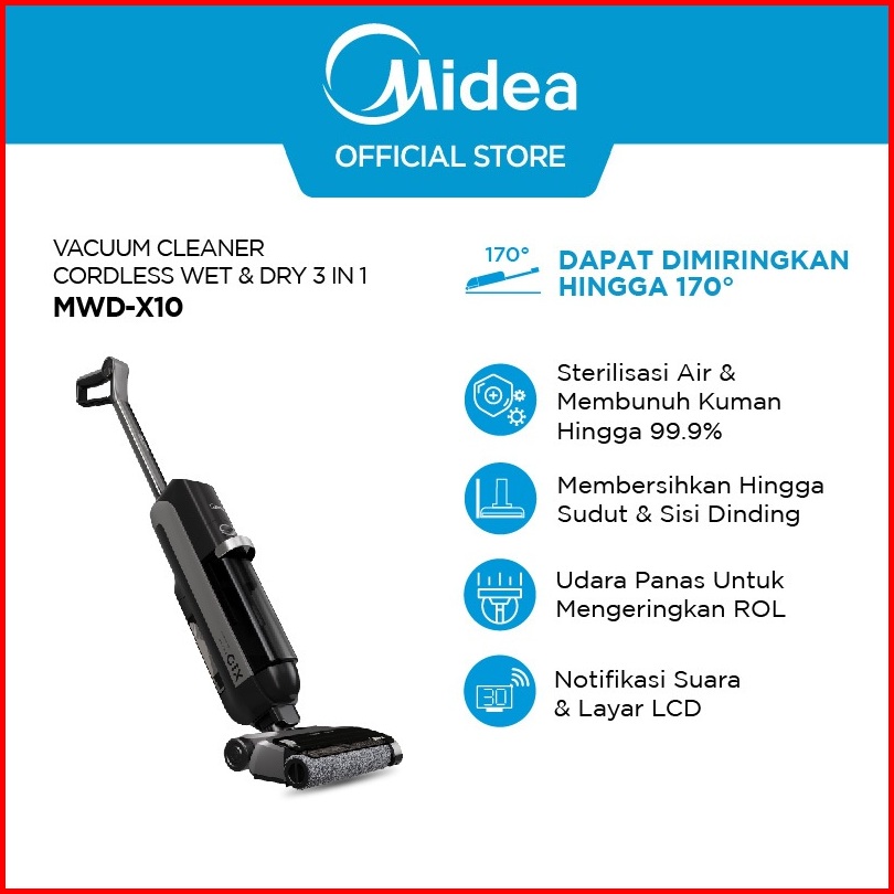 Potongan Langsung Midea Vacuum Stick Cordless Mwd-x6 X8 X10 Gx5pro Wet Dry Floor Washer Terbaik Baterai Besar Tanpa Kabe