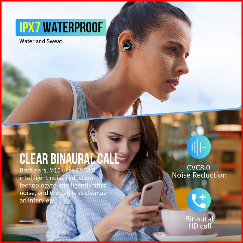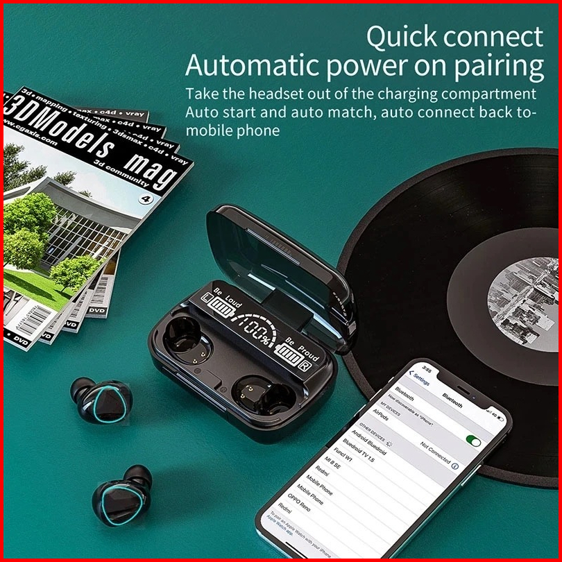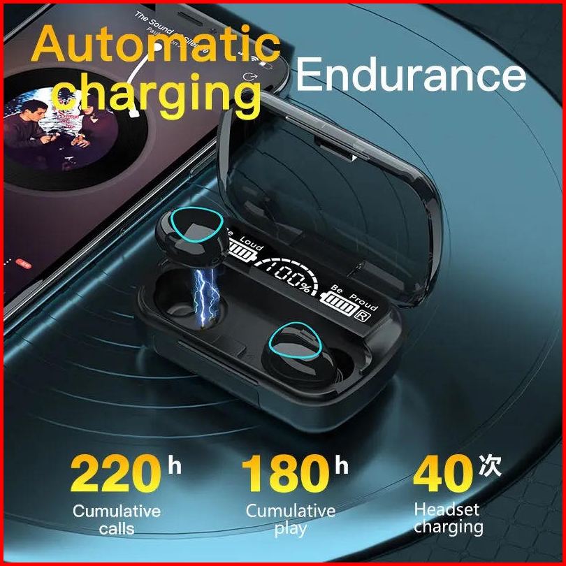 M10 Tws Headset Smart Digital Display Bluetooth 5.3 Wireless Waterproof Earphone3500 Mah Powerbank
