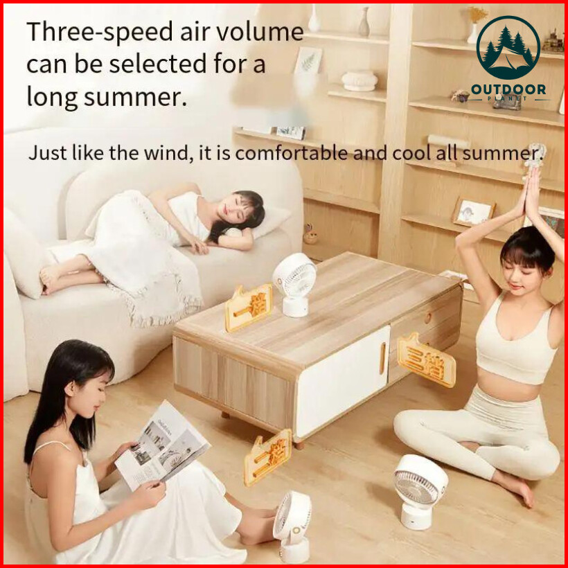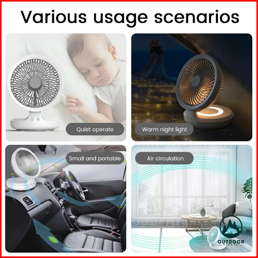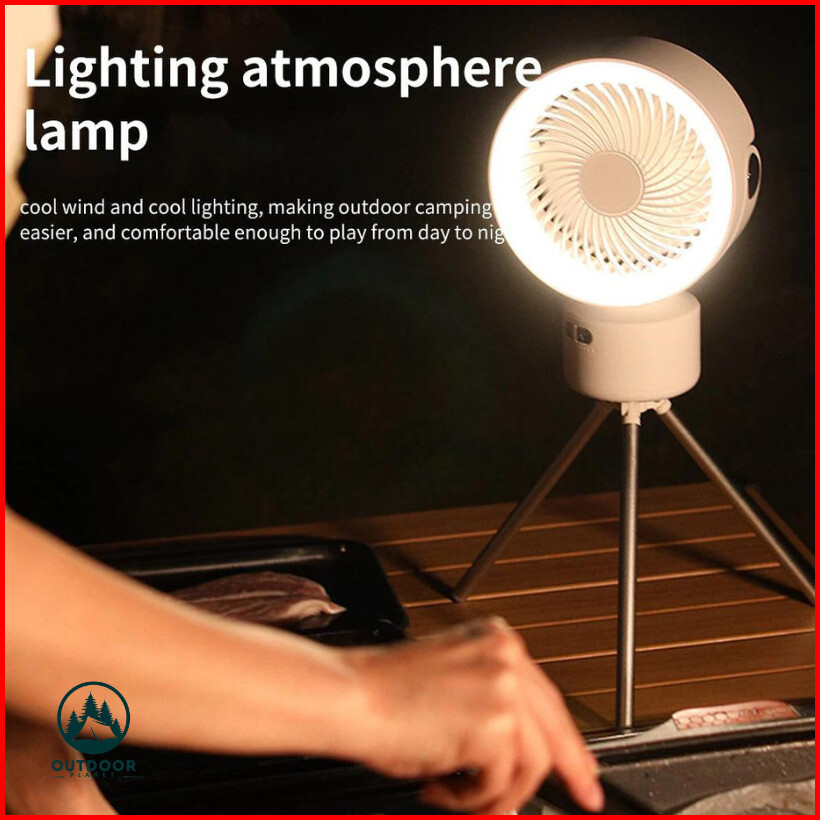 Outdoor Planet Garansi 1 Tahun Kipas Angin Multi-functional Outdoor Fan With Adjustable Light 4000mah Mini Fan Camp Deng