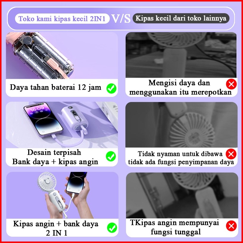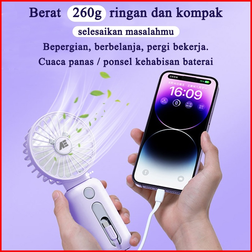 Ae Kipas Angin Portable Mini Tahan Lama 15000mah Mini Fan Desain Terpisah 3 Kecepatan Angin Power Bank Apel Android Type