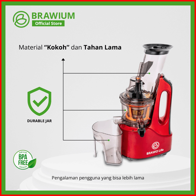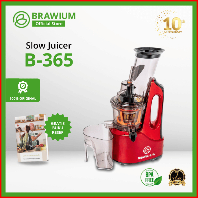 Brawo Life Slow Juicer B-365 By Brawium Pemeras Jus Multifungsi Mudah Dibersihkan