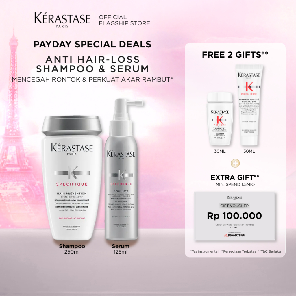 Shampoo KERASTASE Treatment Rambut Rontok Shampoo & Serum-bain Prevention 250ml & Stimuliste 125ml BPOM TERLARIS