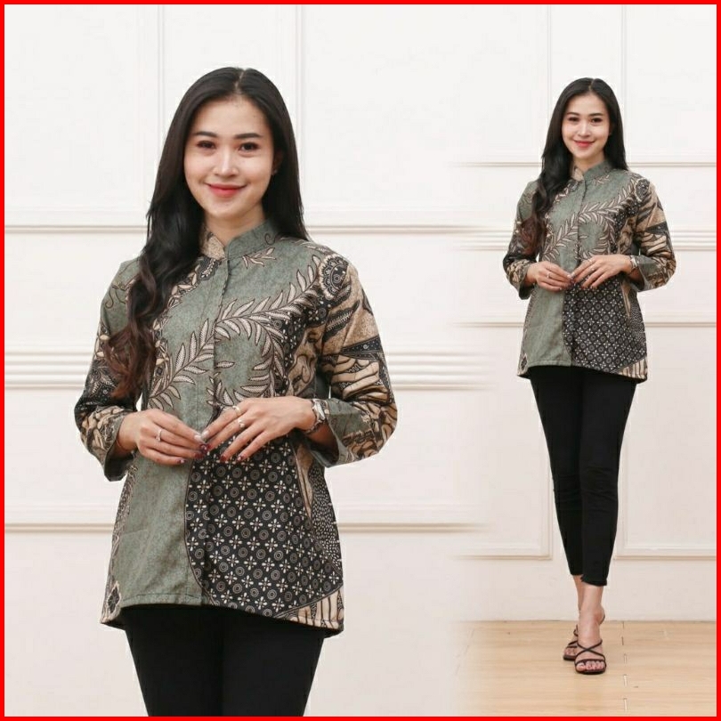 Batik Kerja Wanita Blouse Batik Lengan Panjang Kemeja Wanita Terbaru