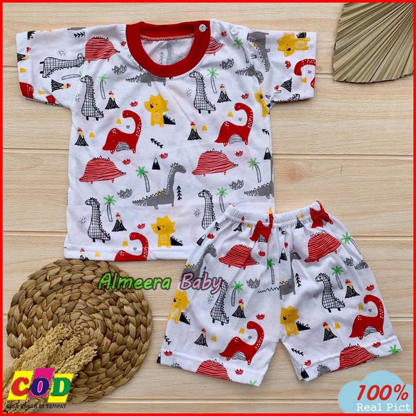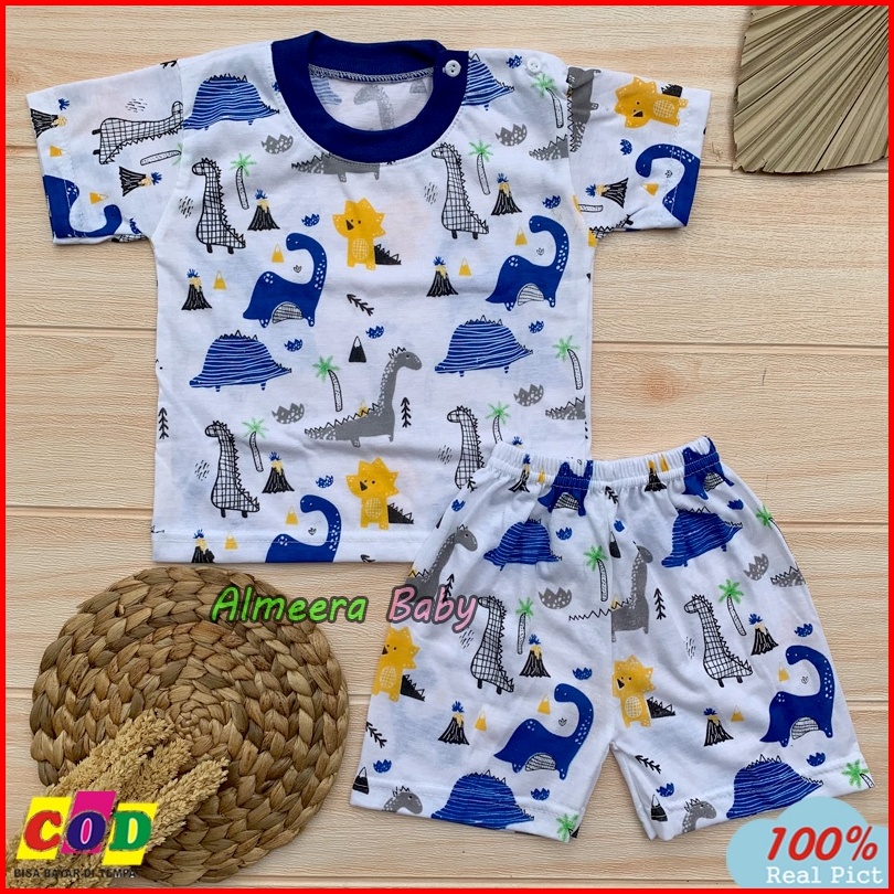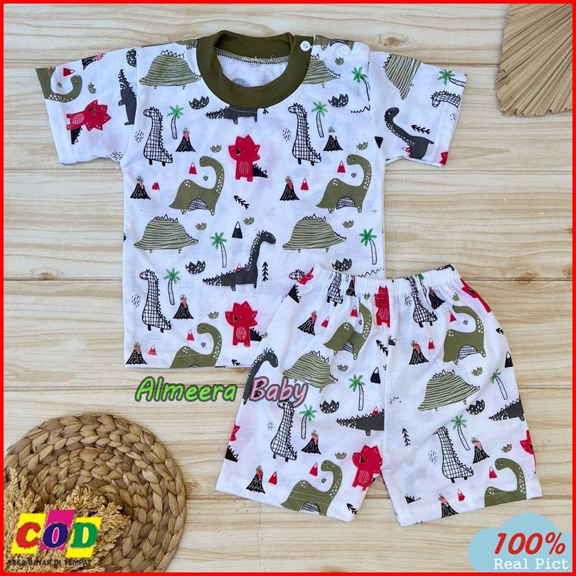 Setelan Baju Bayi Lengan Pendek Motif Dino Anak Usia 3-12 Bulan Almeera Baby And Kids