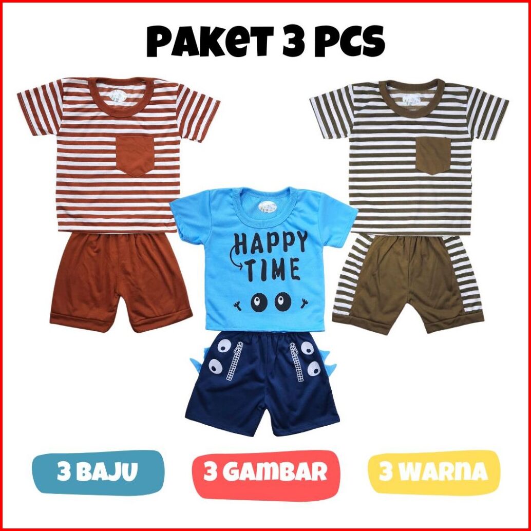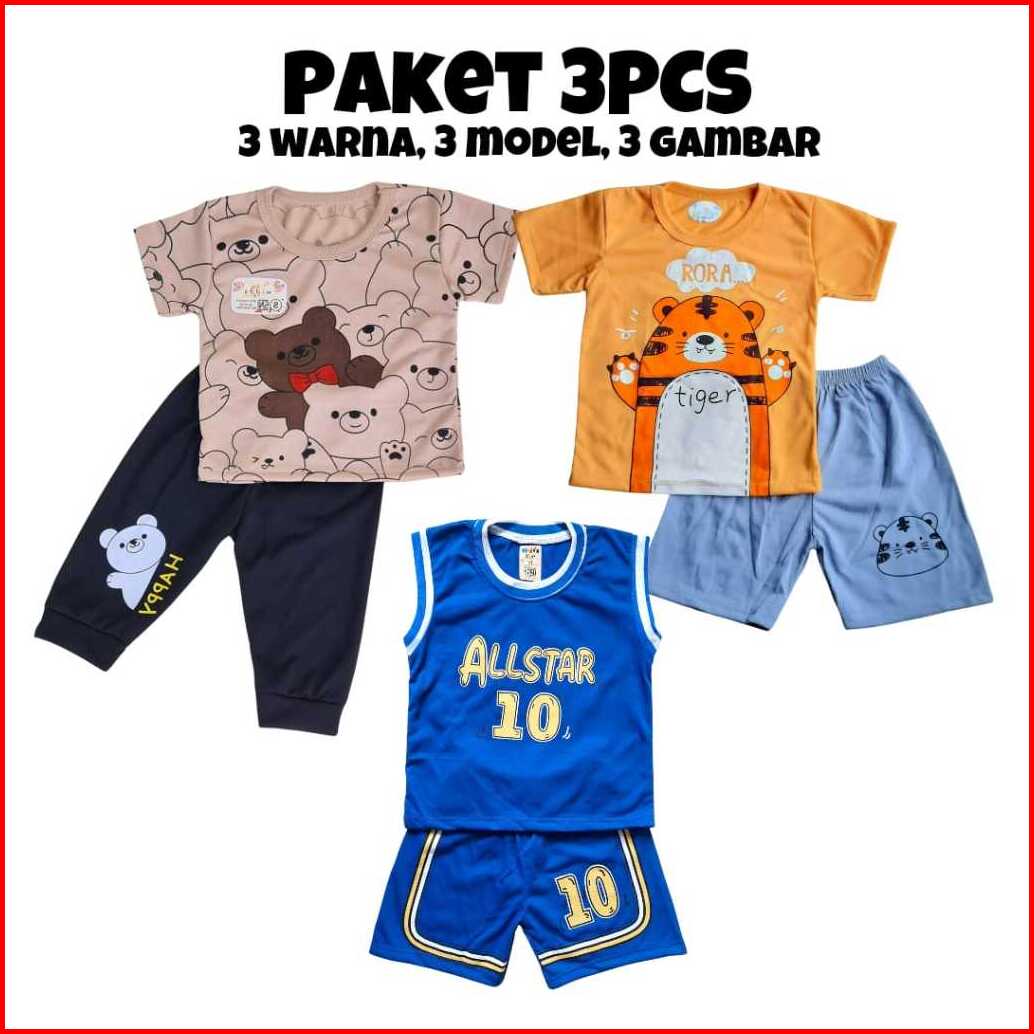 Best Seller Paket Bundling 3 Pcs Baju Anak Laki Laki 0-2 Tahun Paket Baby Leticia