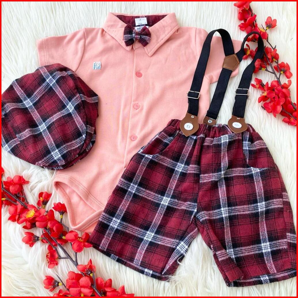 Baju Setelan Kemeja Suspender Celana Topi Dasi Bestseller Fashion Anak Bayi Cowok Laki Murah -jus