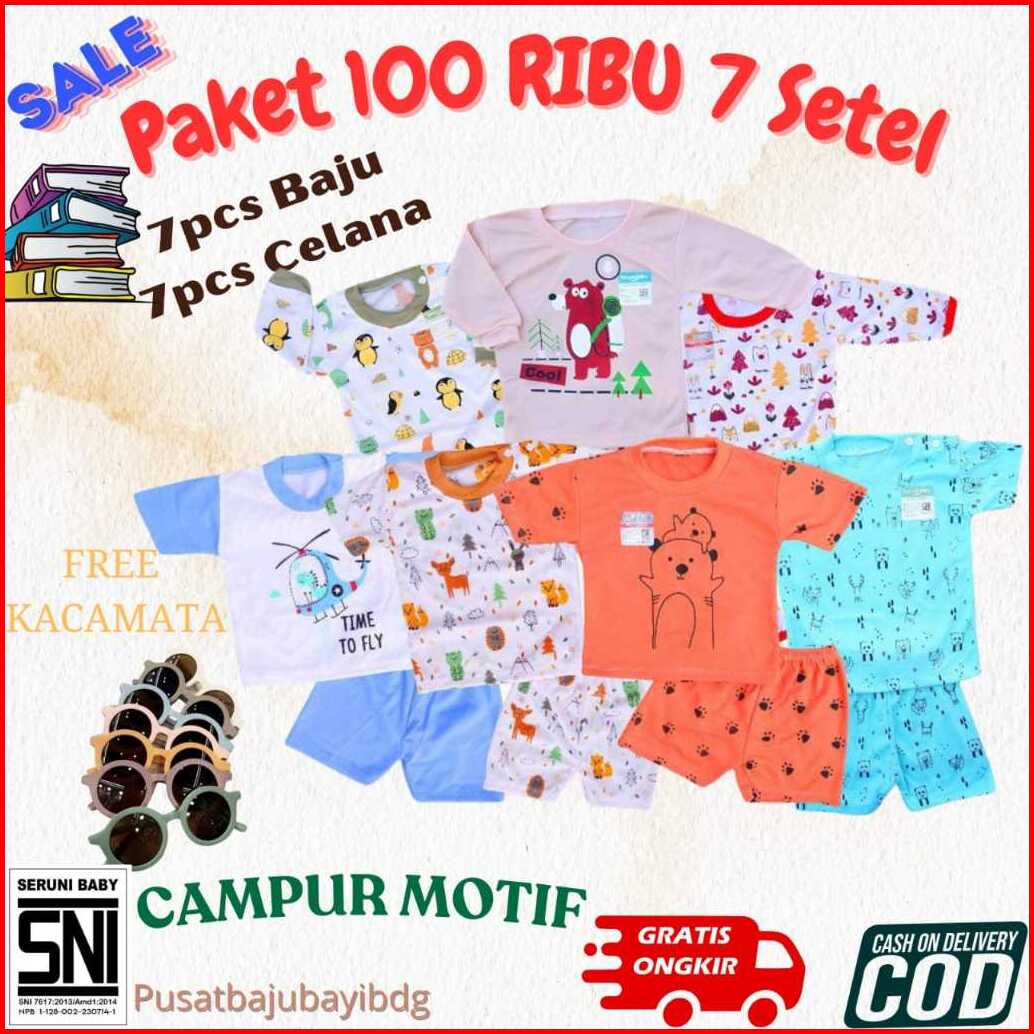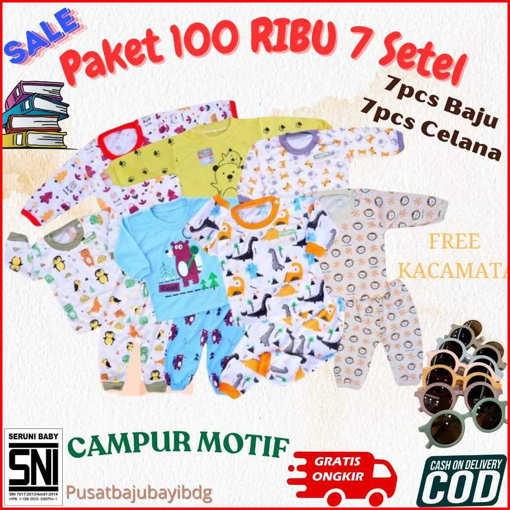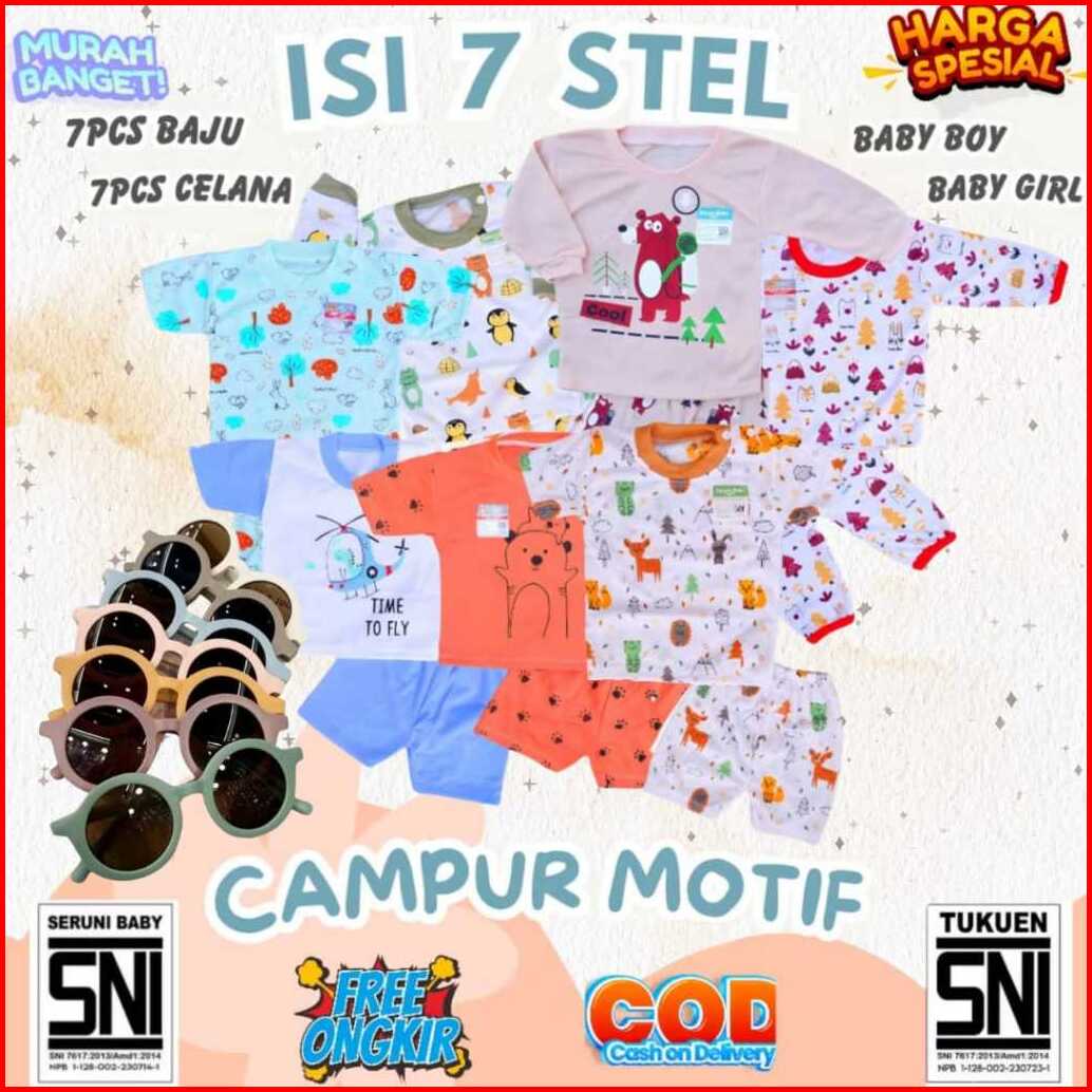 - Paket 100rb 7 Setel Baju Bayi 3-12 Bulan Laki Laki Dan Perempuan Mix Motif Free Kacamata Bayi