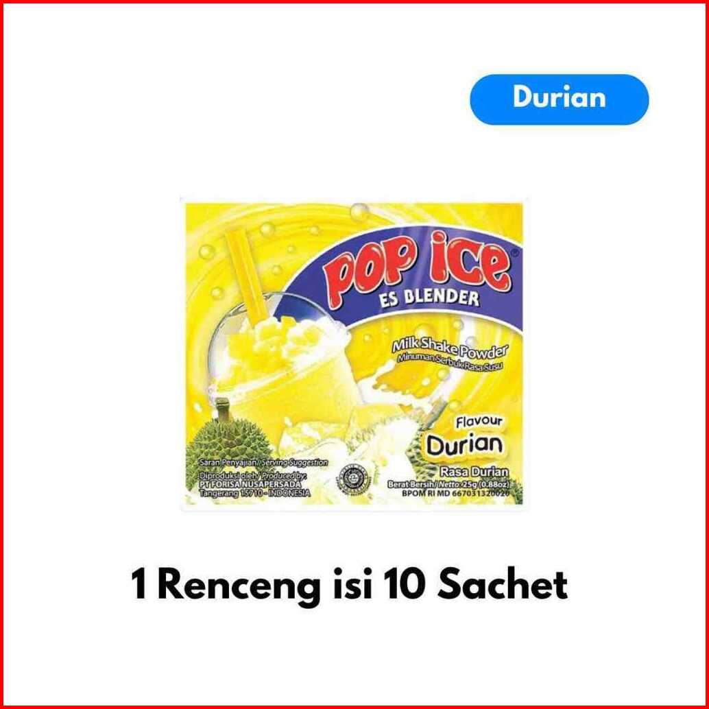 Pop Ice 25gr Es Blender Renceng Isi 10sachet Rasa Durian Melon Coklat Taro Avocado Strawberry Mangga