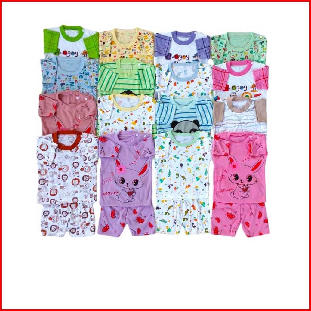 Paket Hemat 5 Setel Baju Bayi 3-15 Bulan Laki Laki Perempuan Lengan Panjang Pendek Mix Motif Warna Bahan Lembut