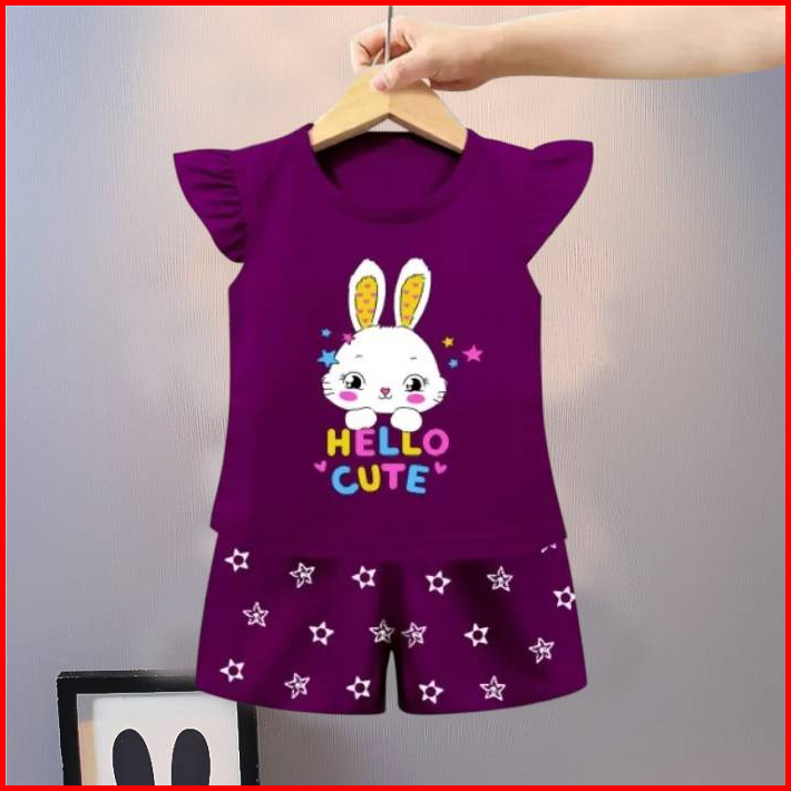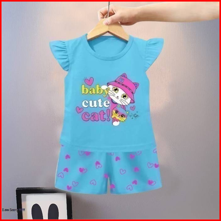 Pusbakids Setelan Anak Cewek Setelan Baju Anak Perempuan Model Tangan Kupu-kupu
