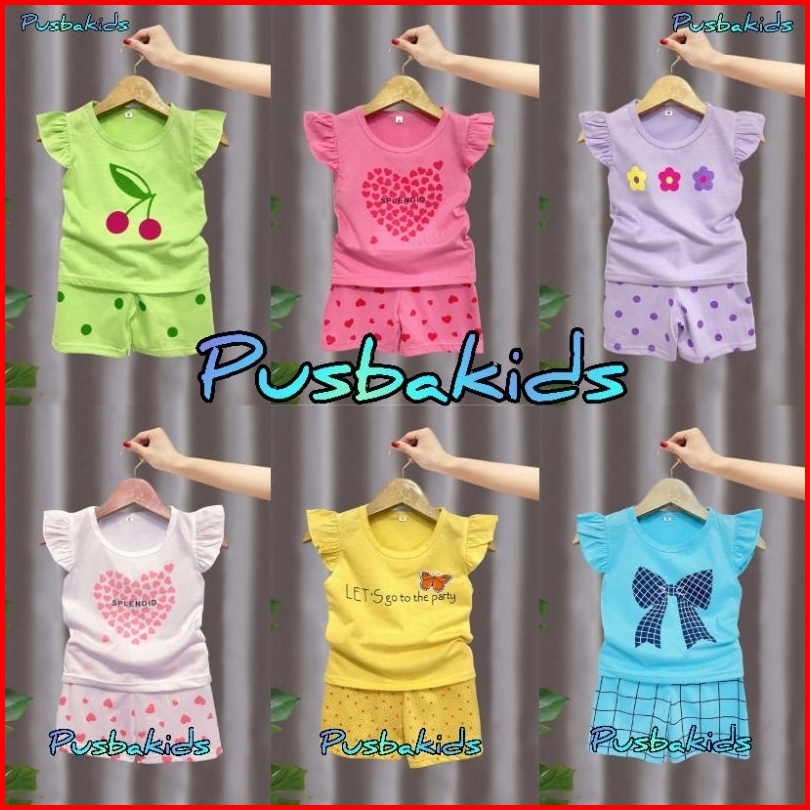 Ruffle Tee Setelan Anak Perempuan Model Tangan Kupu-kupu 0-7 Tahun