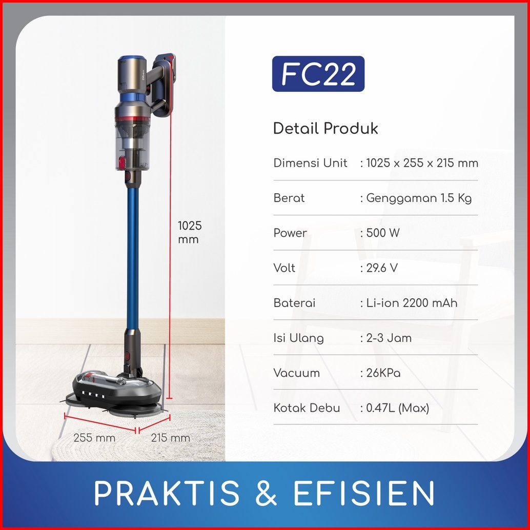Dibea Fc22 Handheld Cordless Vacuum Cleaner Double Hepa Filter