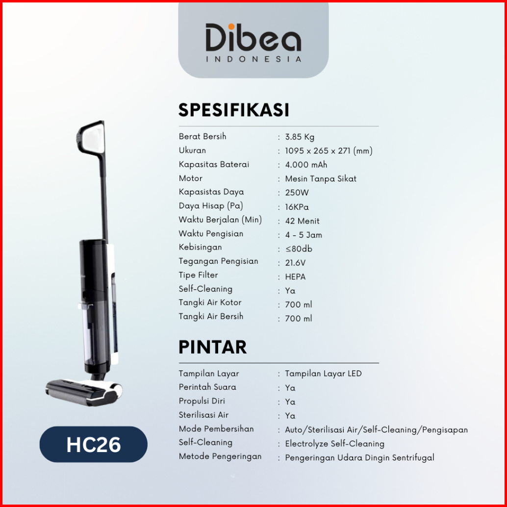 Dibea Floor Washer Hc26 Smart Wet Dry Cordless Stick Handheld Vacuum Cleaner And Floor Washer