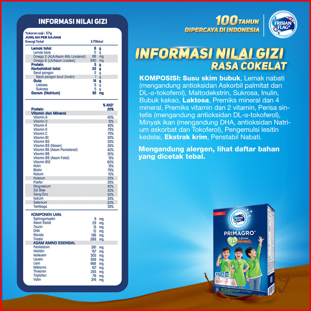 Frisian Flag Primagro 1 Cokelat 750 Gr 1-3 Tahun Susu Formula Pertumbuhan Anak - 1 Pcs