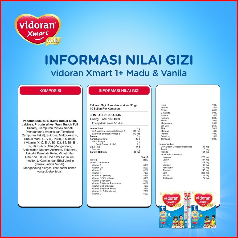 Vidoran Xmart 1 Madu Vanilla 925 Dan 700 Gr Susu Formula Pertumbuhan Anak 1-3 Tahun -