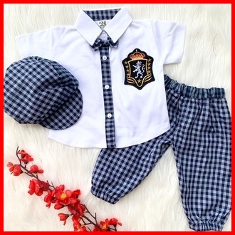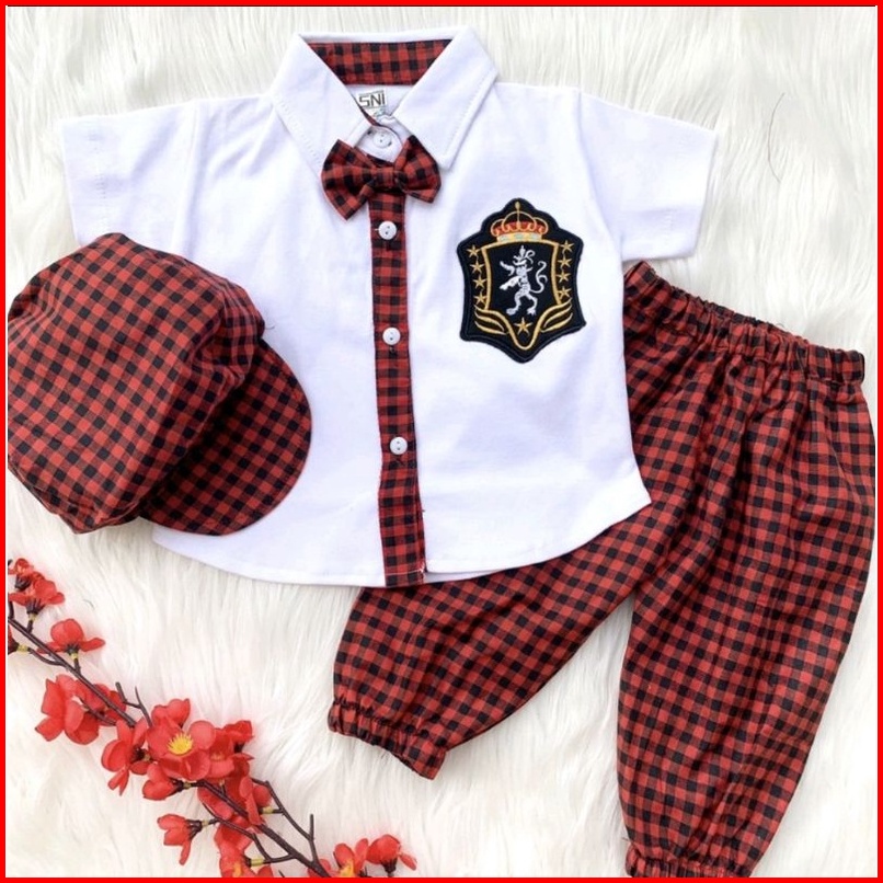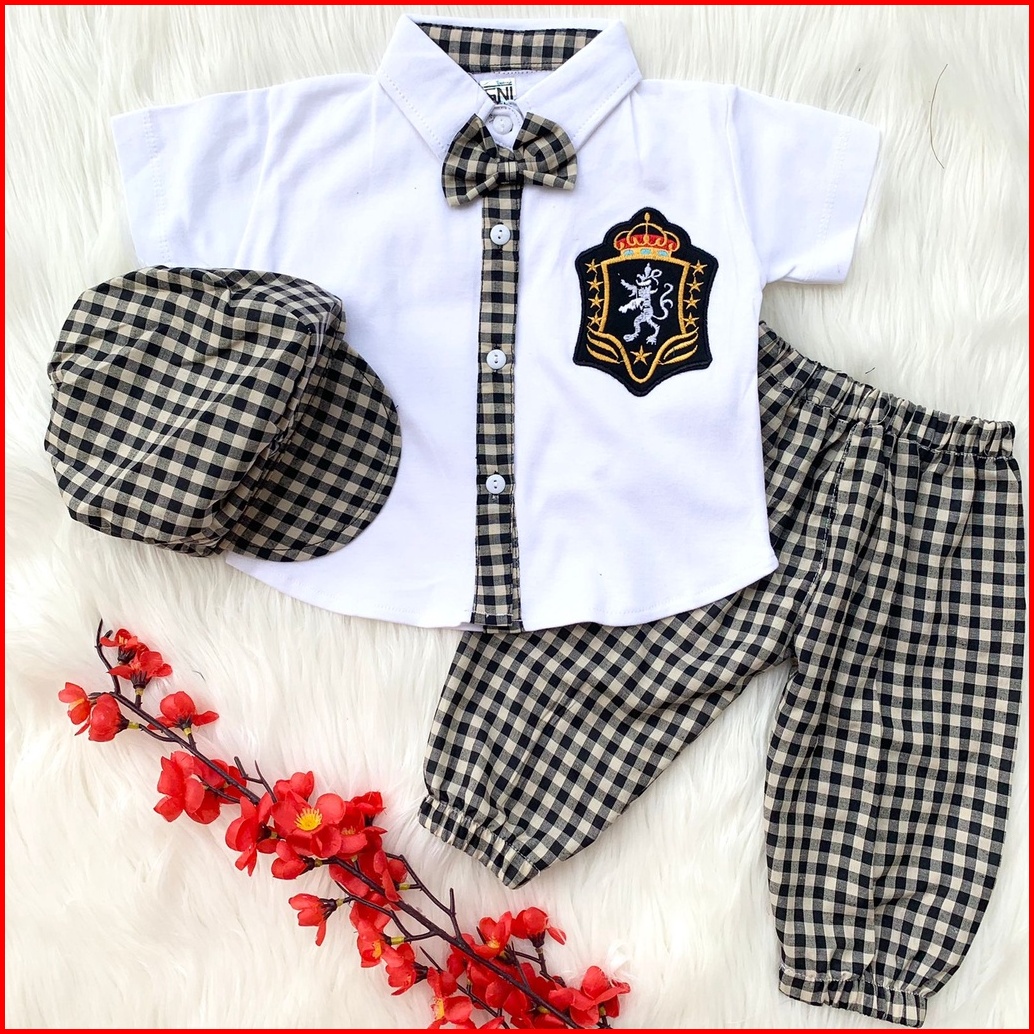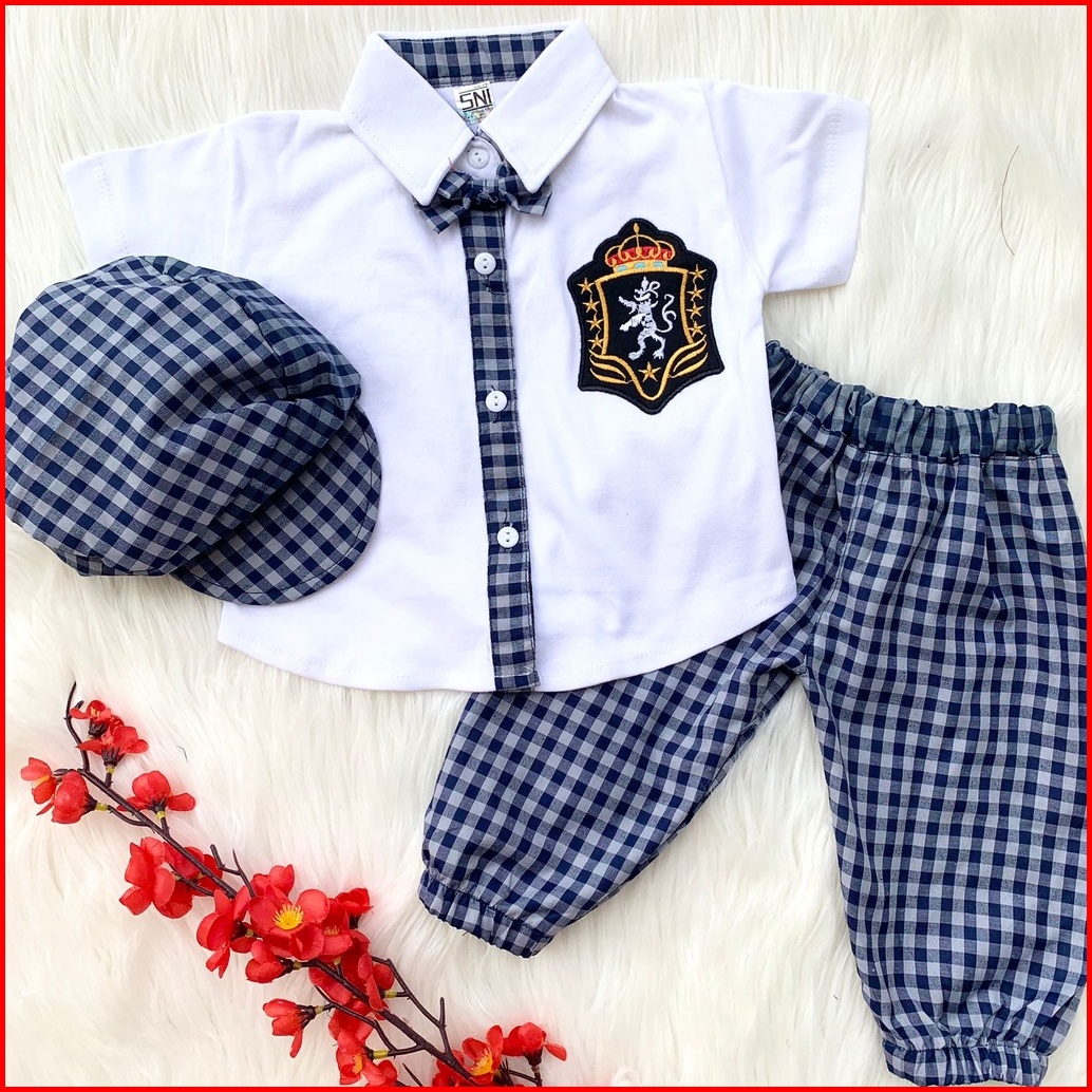 Baju Setelan Kemeja Celana Motif Kotak Dasi Keren Fashion Anak Bayi Cowok Laki Babyboy Murah -hog